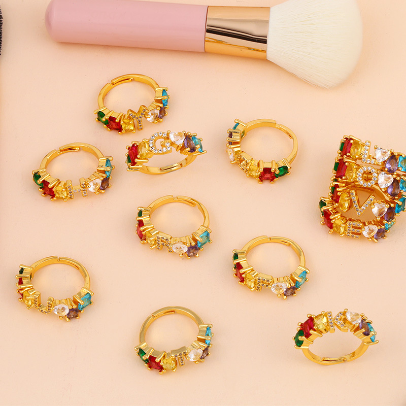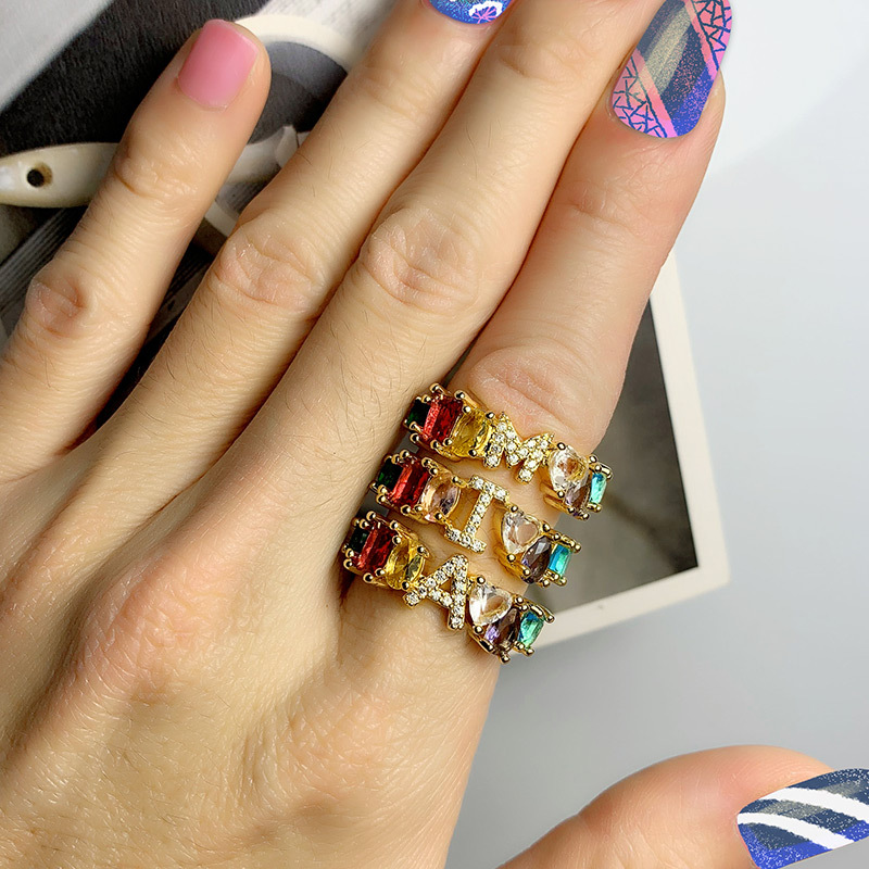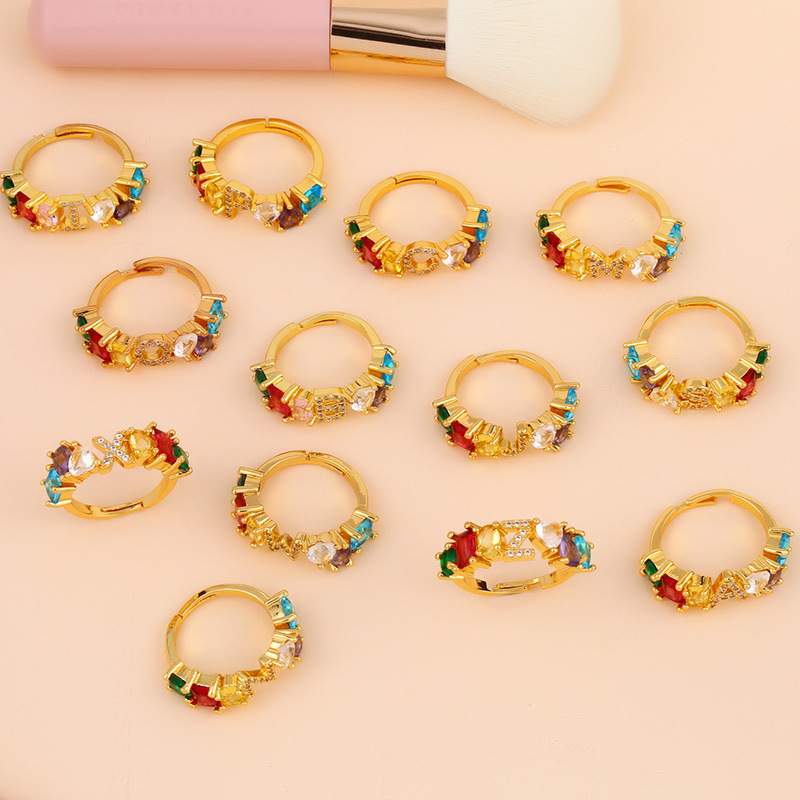 New accessories 26 letters ring creative European and American ring diamond men and women couple ring rij36