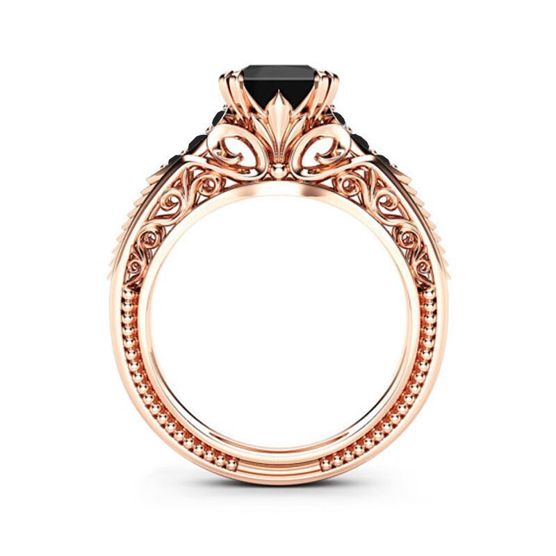 New accessories European and American fashion black square zircon ring engagement proposal jewelry wholesale
