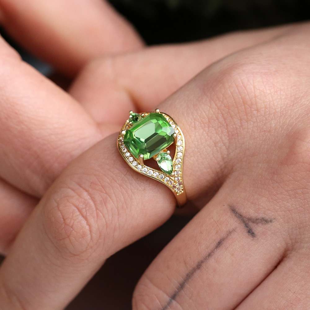 New accessories European and American fashion engagement ring inlaid with green zircon jewelry