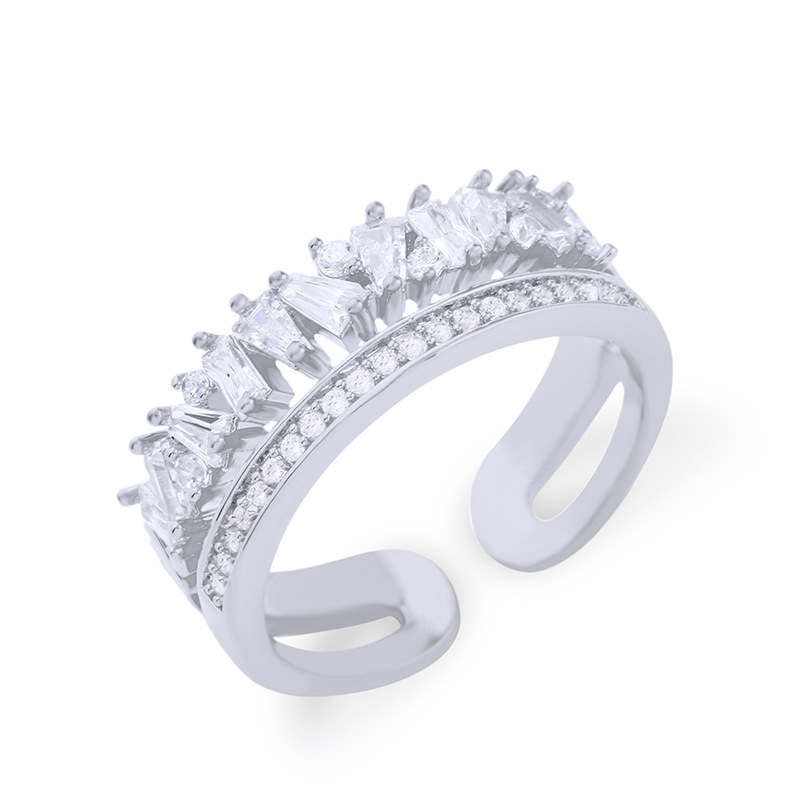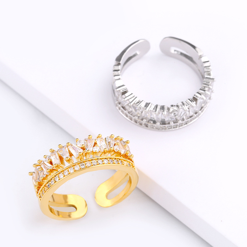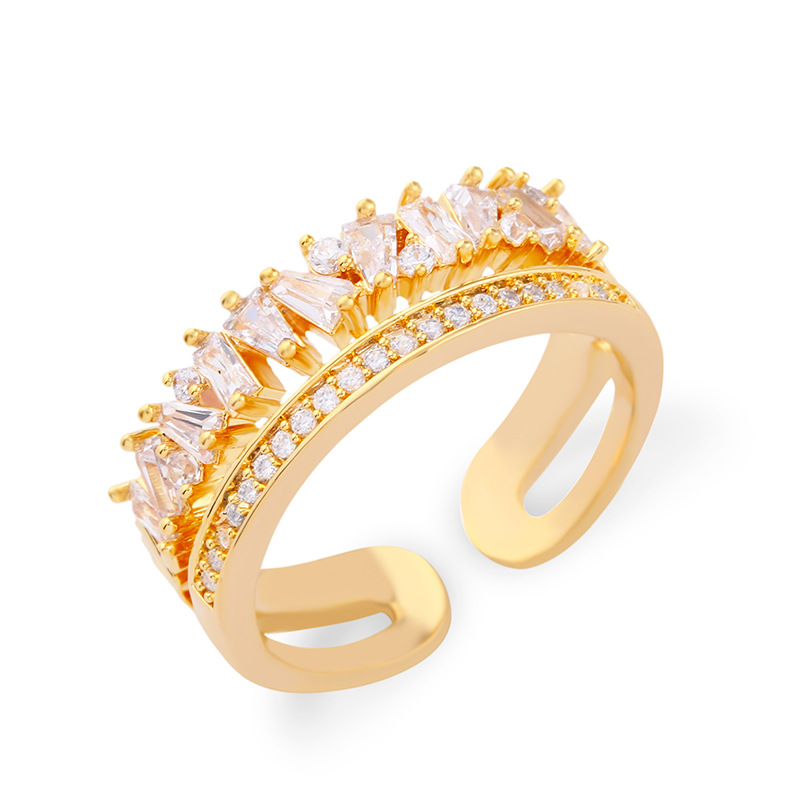 New accessories European and American personality inlaid zircon ring ladies double open simulation electroplated diamond ring rih26
