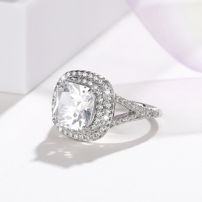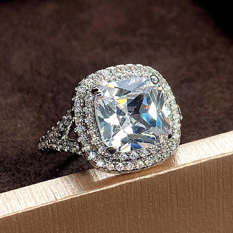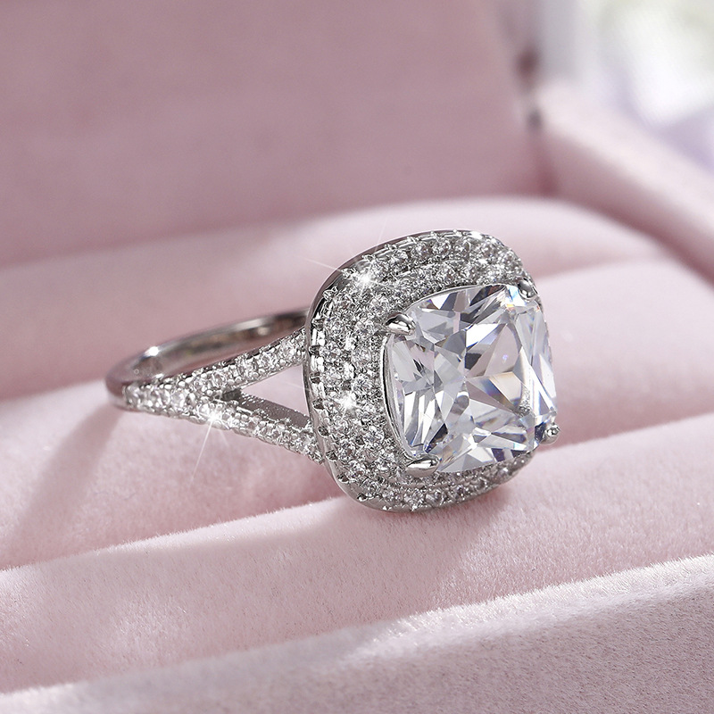 Hot selling new princess square ring European and American hot style inlaid zircon women's jewelry engagement proposal ring