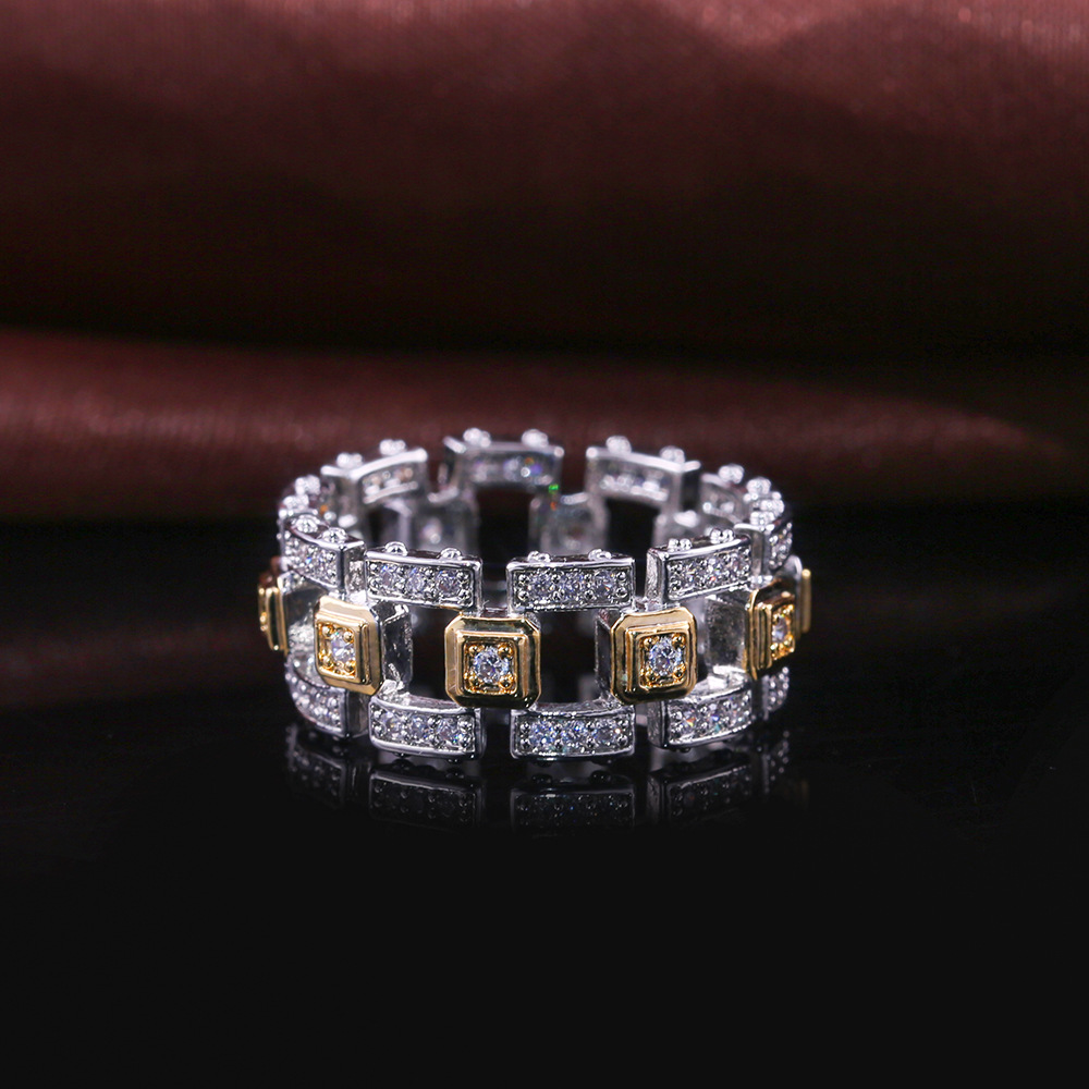 New accessories fashion modern copper plated rose gold color ring European and American creative full diamond engagement ring