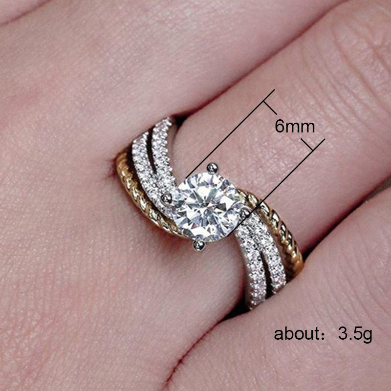 Classic four-claw imitation zircon micro-inlaid ring women's double row two-color twist arm ring engagement wedding ring women