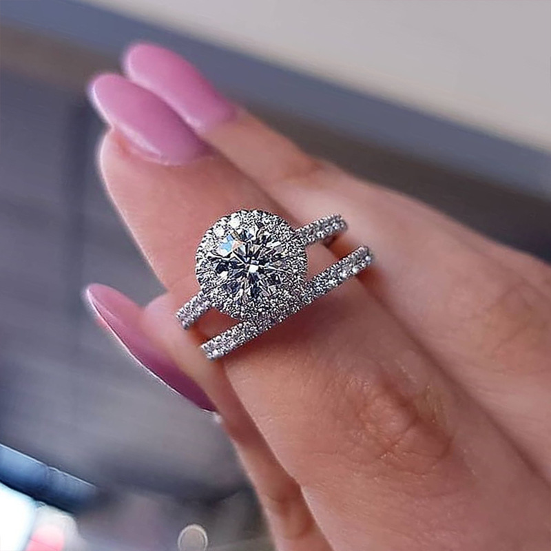 New arrival European and American diamond and zircon engagement ring two-piece set fashionable OL ladies ring set