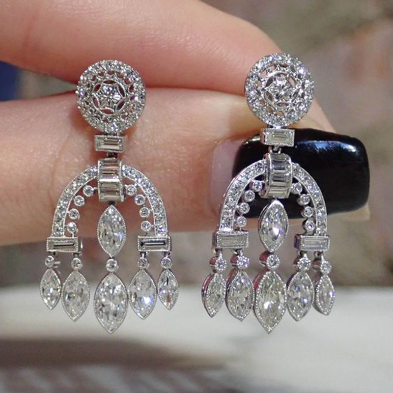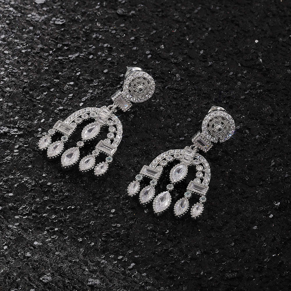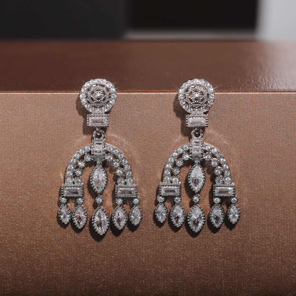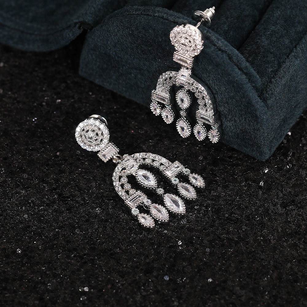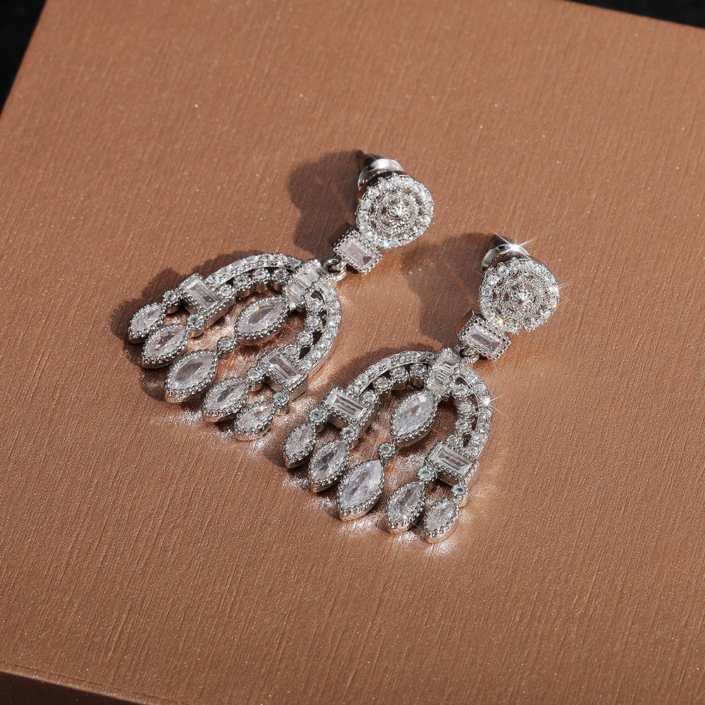 New Baroque palace style drop earrings heavy full diamond zircon wedding bridal earrings