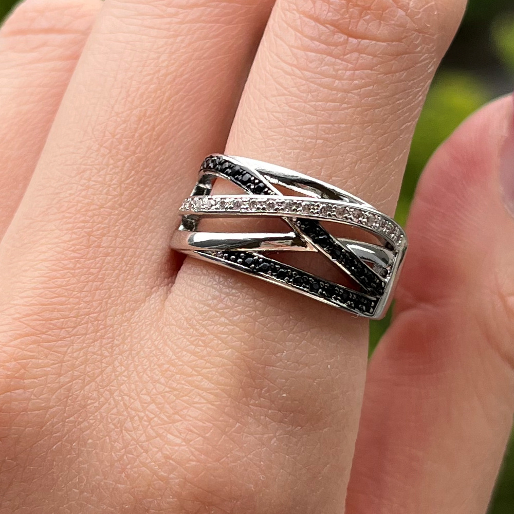 New black and white diamond inlaid ring creative geometric lines simple ring hot sale