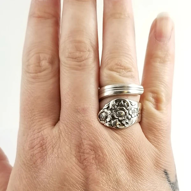 Classic retro engraved auspicious flower ring classical wide version Miao ring Yunnan ethnic style men and women's jewelry