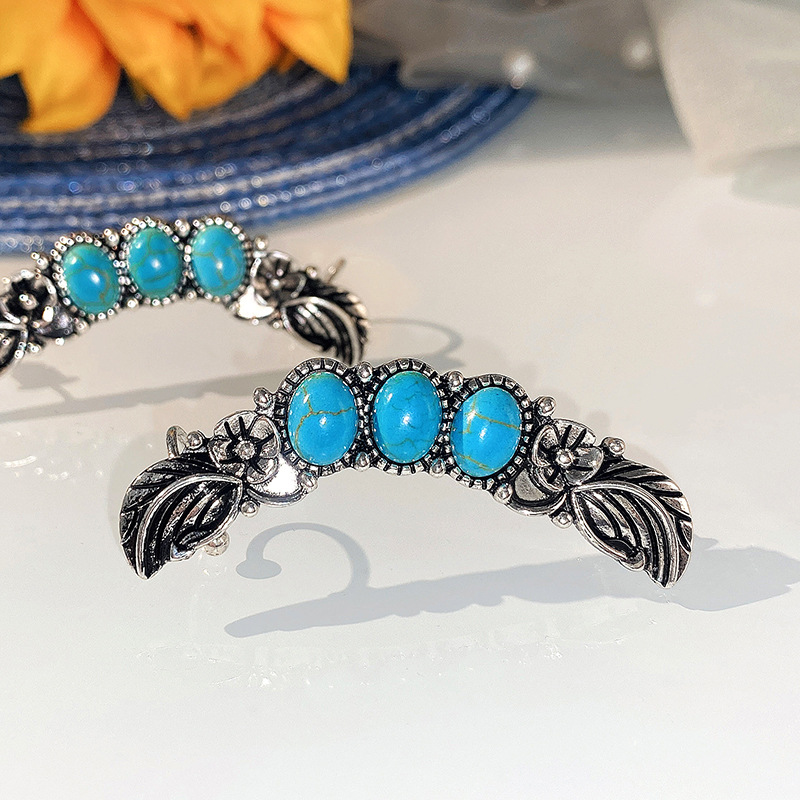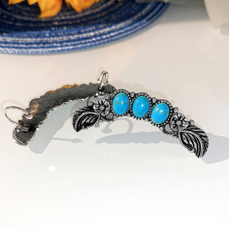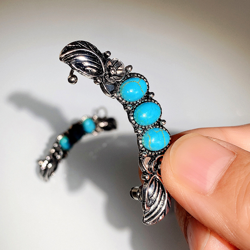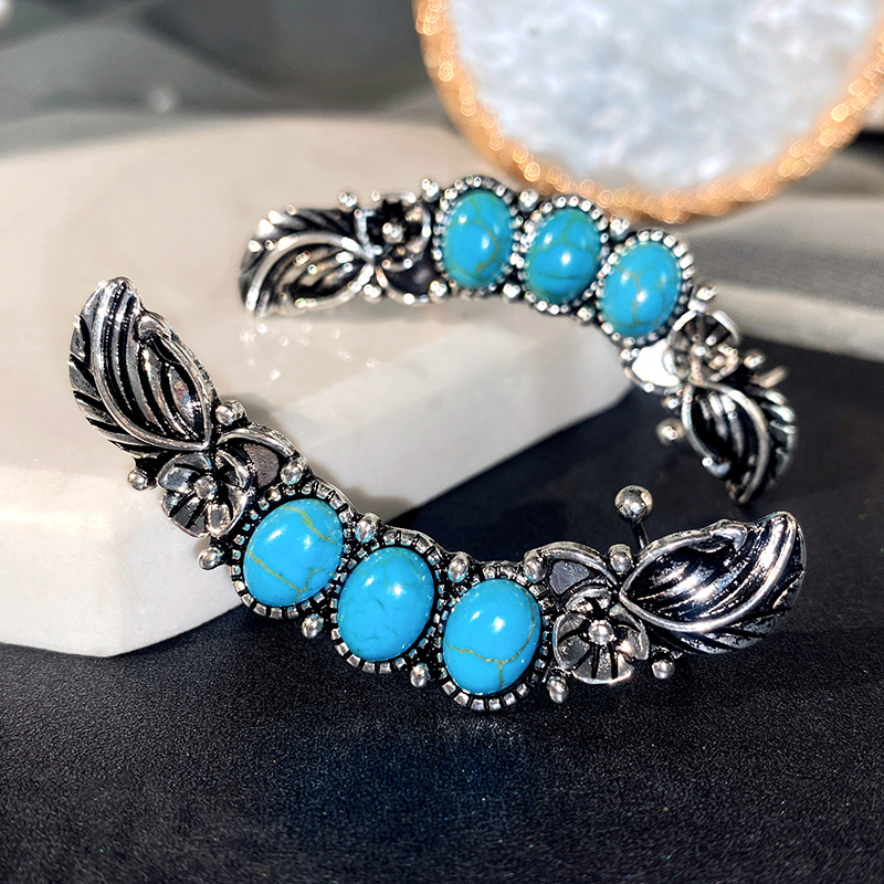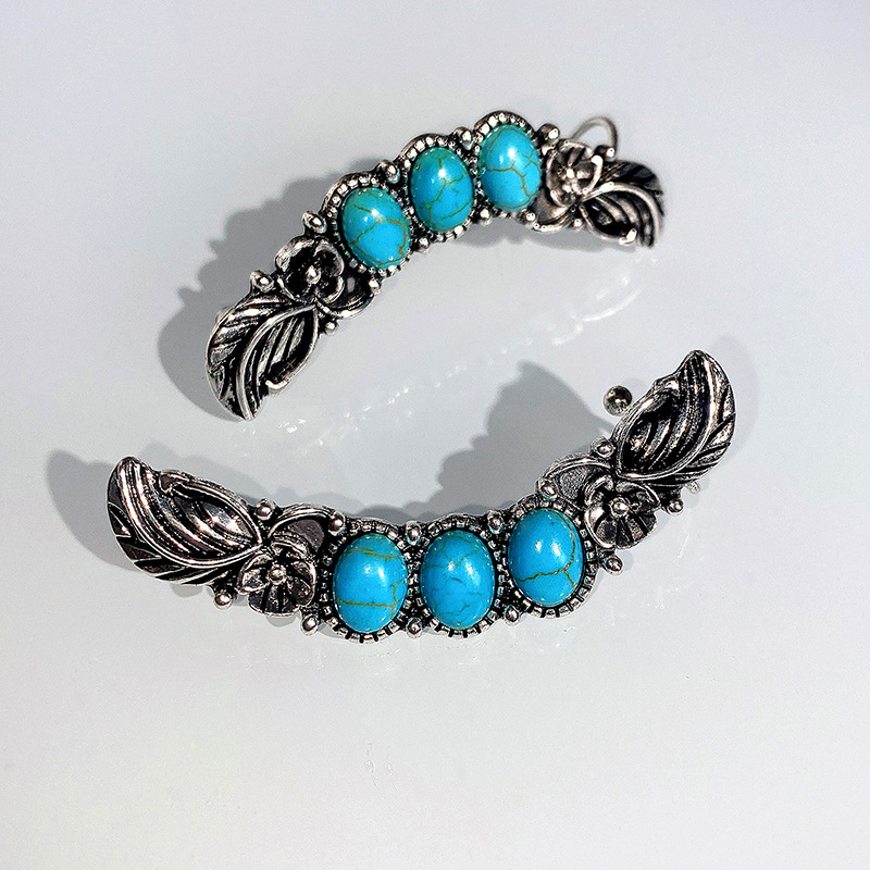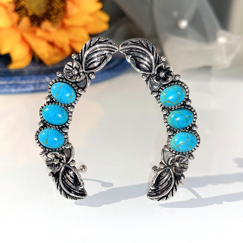 New bohemian style exaggerated large earrings imitation turquoise retro earrings ear clips ethnic jewelry