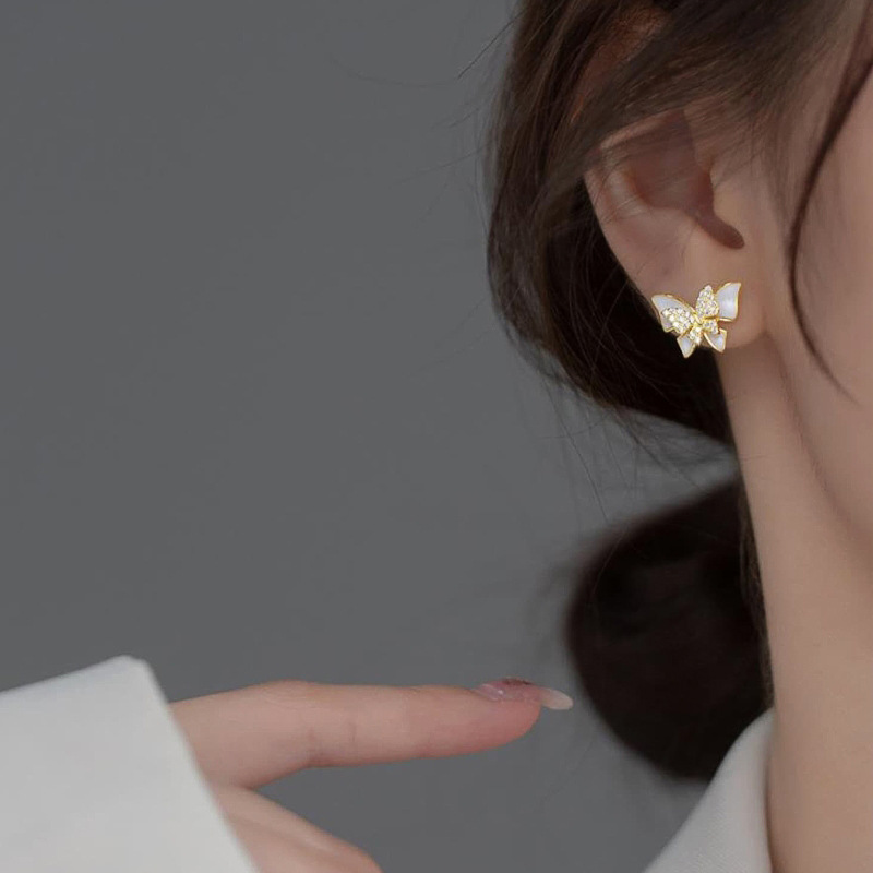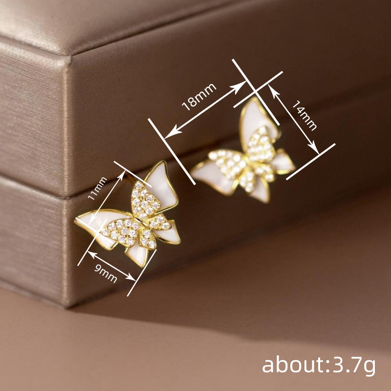 New butterfly earrings for women, double butterfly painting oil design earrings, fresh and elegant ladies' jewelry