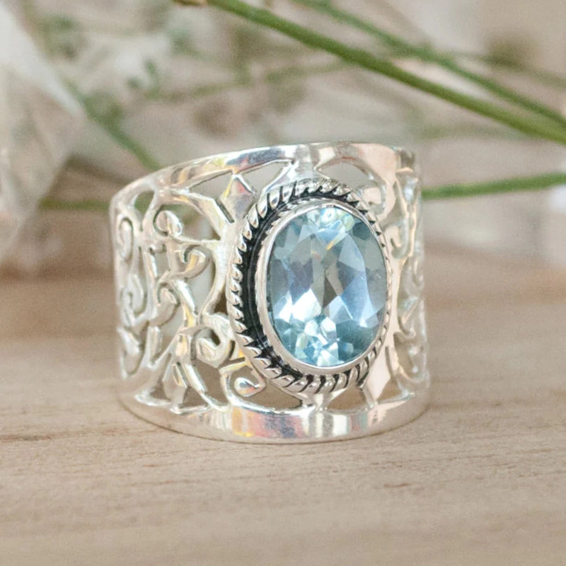 New Charm Women's Fashion Ring Wide Design Ring Style Atmospheric Flower Vine Ring