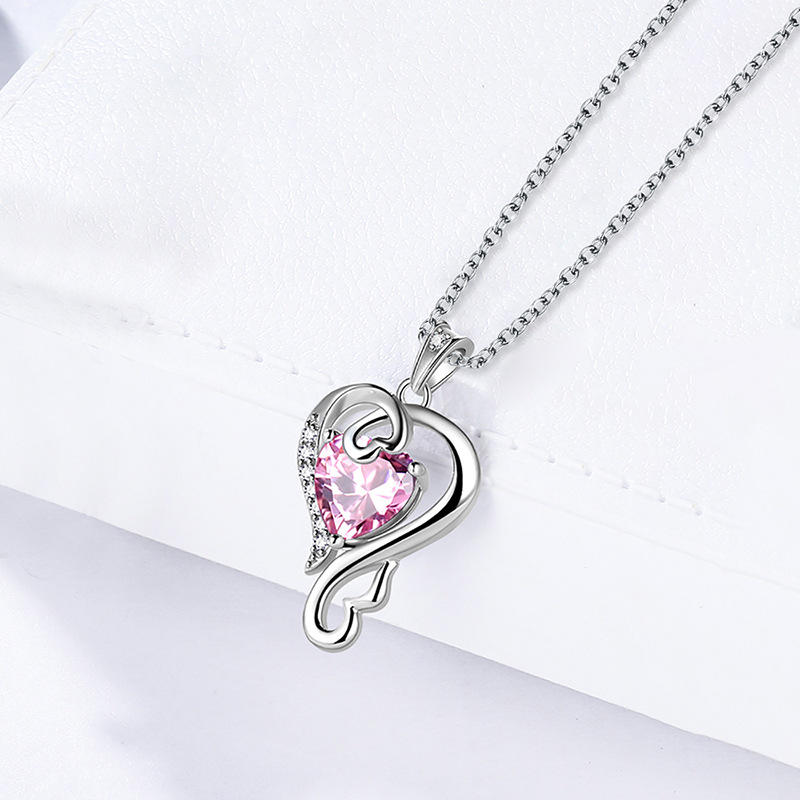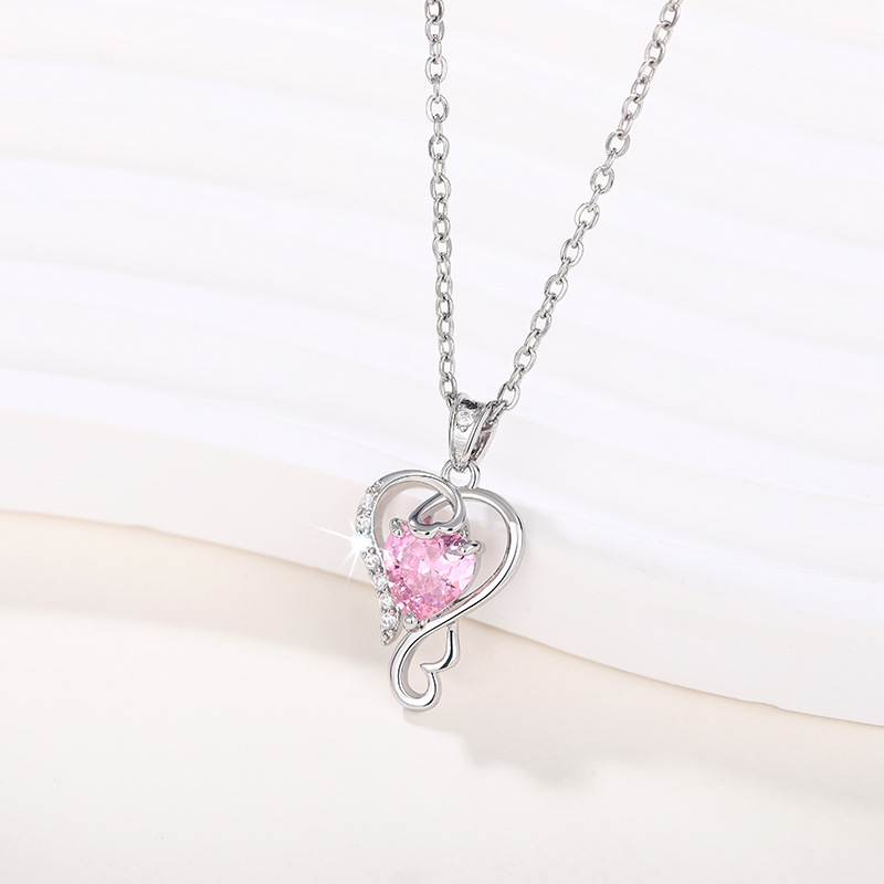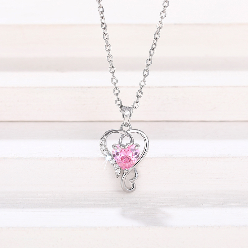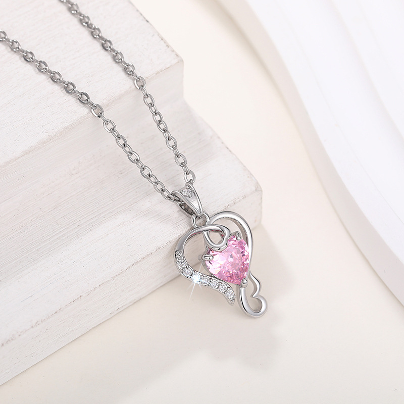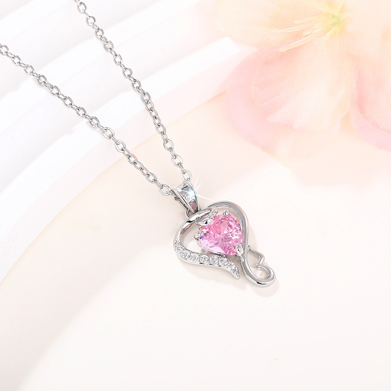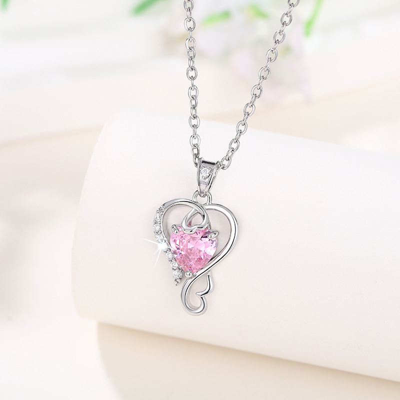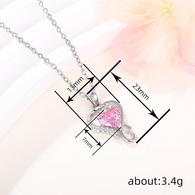 New Chinese Valentine's Day necklace for women, love line design pendant, pink heart-shaped sweet style