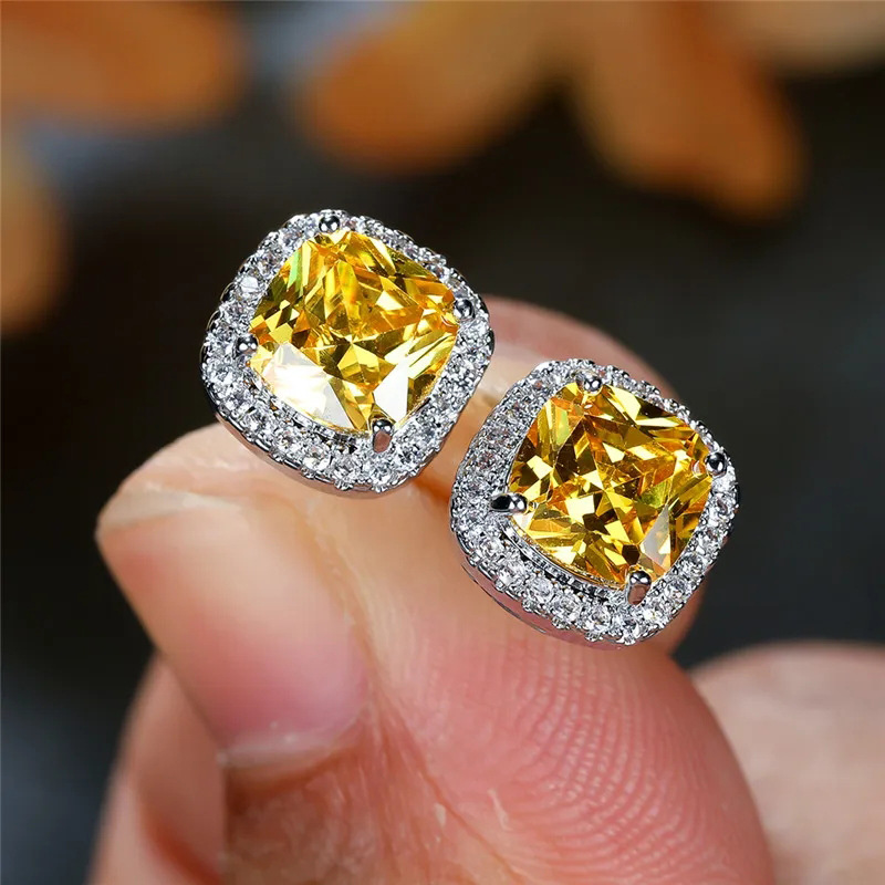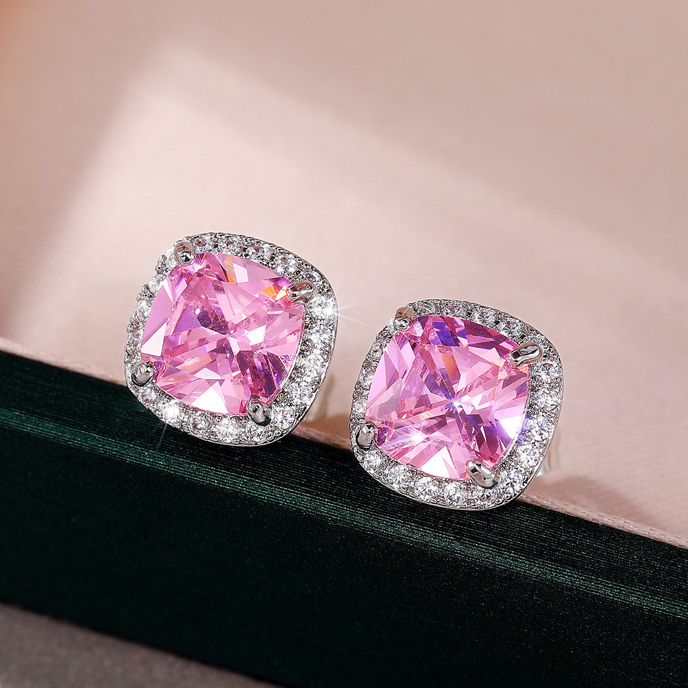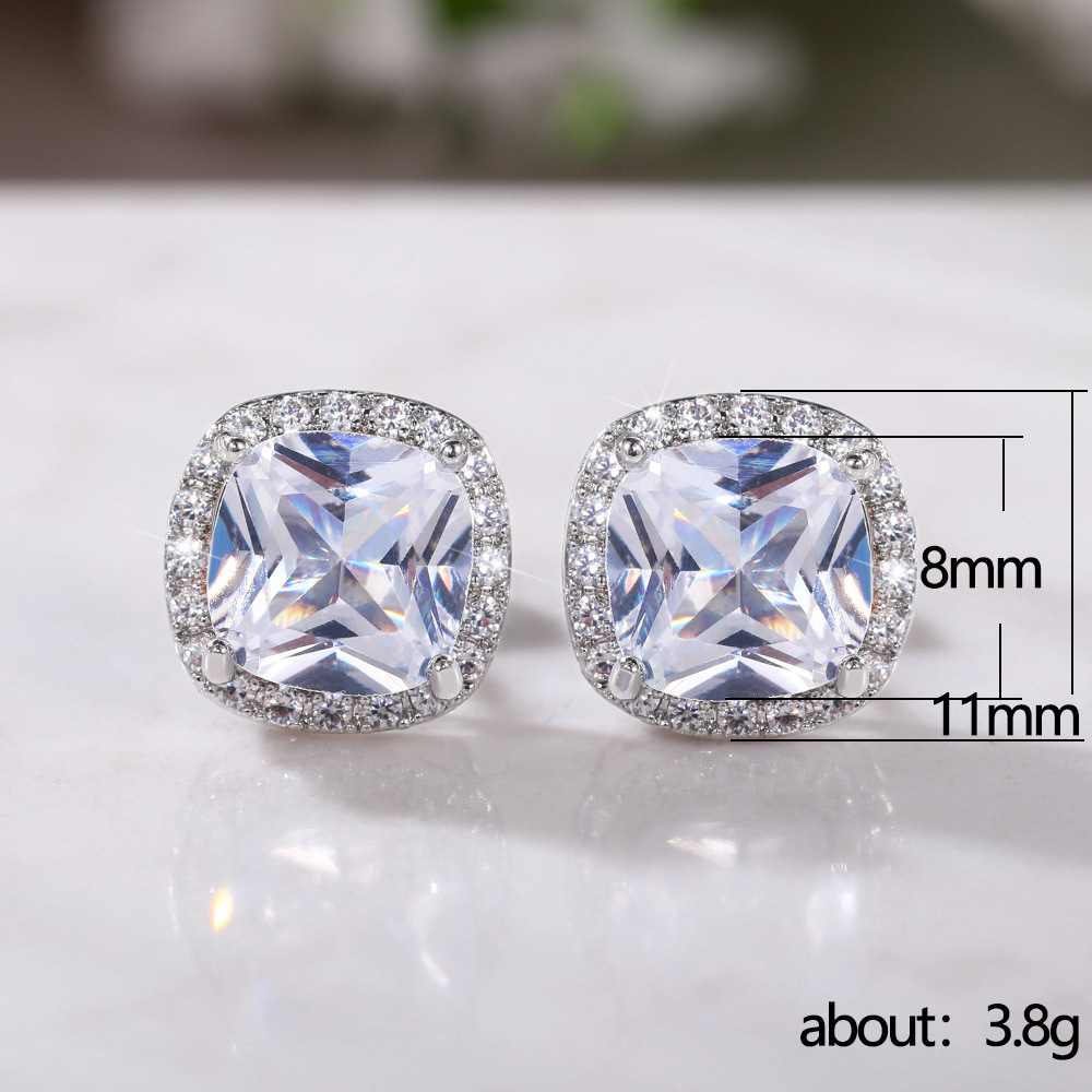 New classic four-claw AAA square zircon earrings from European and American manufacturers