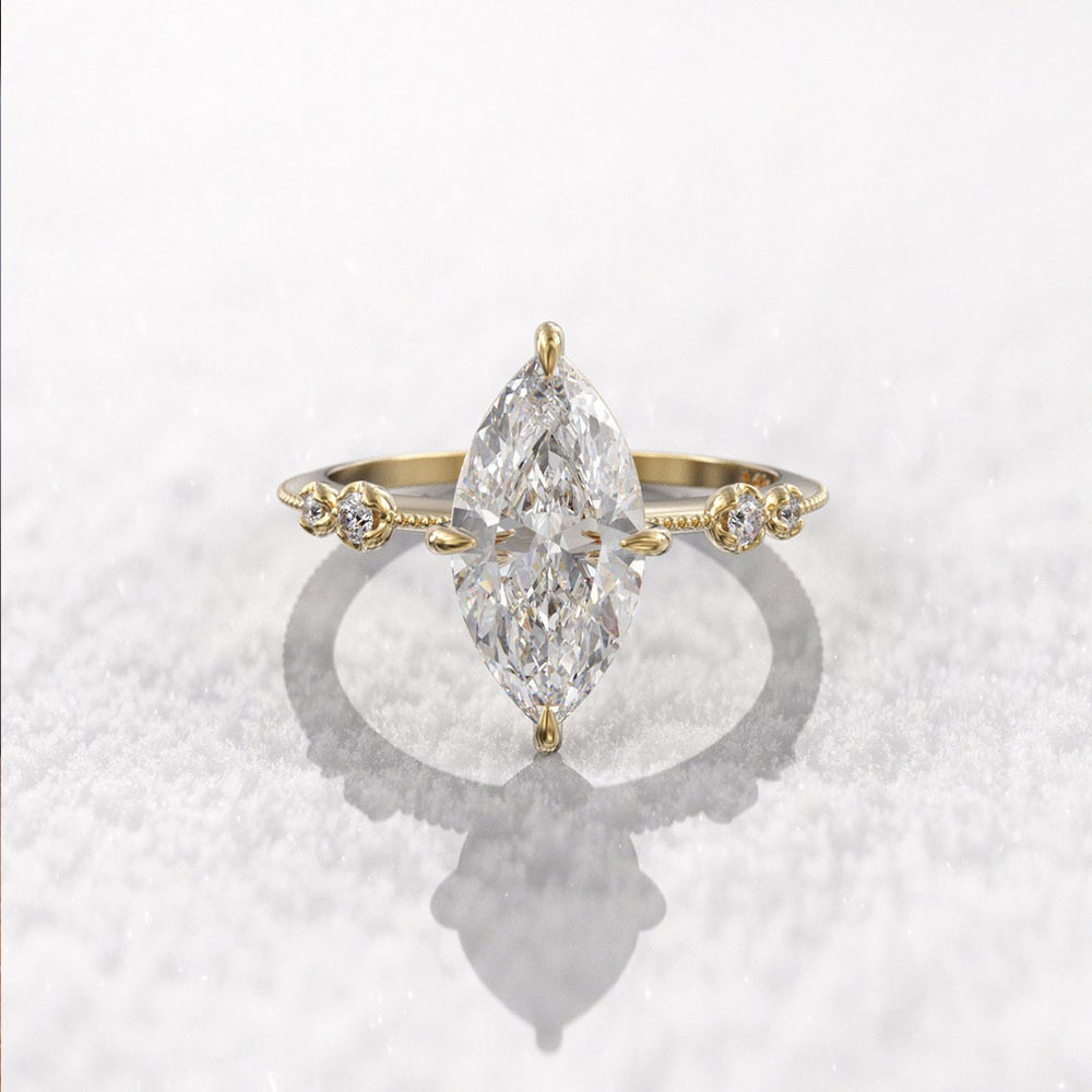 New classic four-claw hand-set marquise zircon ring for women Valentine's Day gift