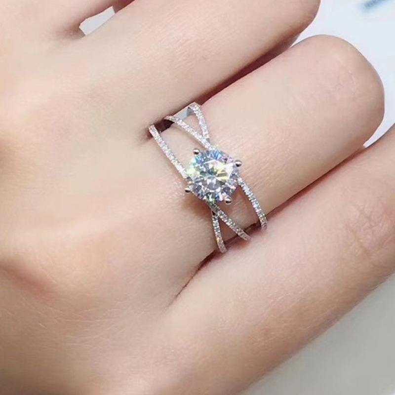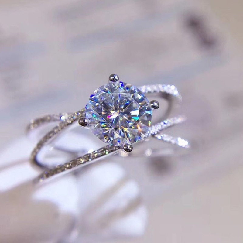 Micro-inlaid celebrity style classic all-match popular ring six-claw zircon wedding ring European and American style light luxury ring