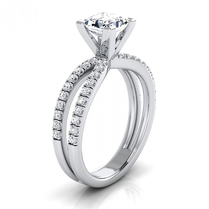 Hot selling new princess square ring European and American hot style inlaid zircon women's jewelry engagement proposal ring