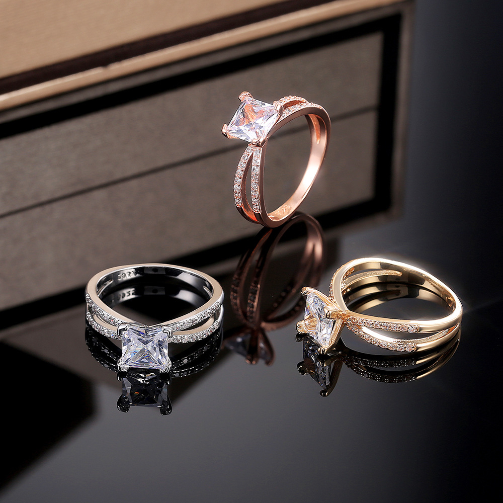 New classic geometric line square zircon ring women's platinum-plated jewelry hot sale
