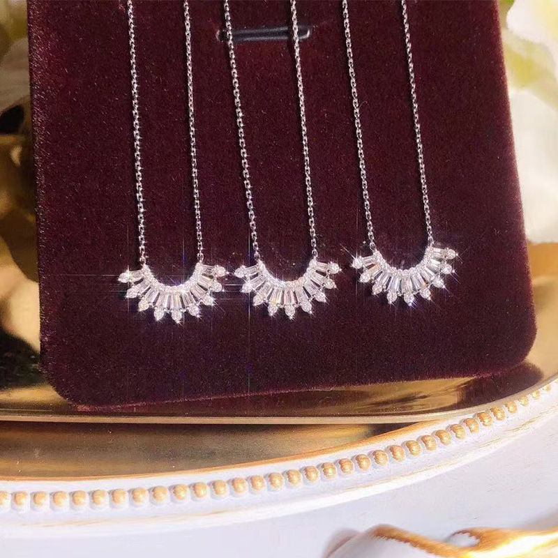 New clavicle chain copper inlaid T square zircon fan-shaped pendant necklace Valentine's Day gift for girlfriend