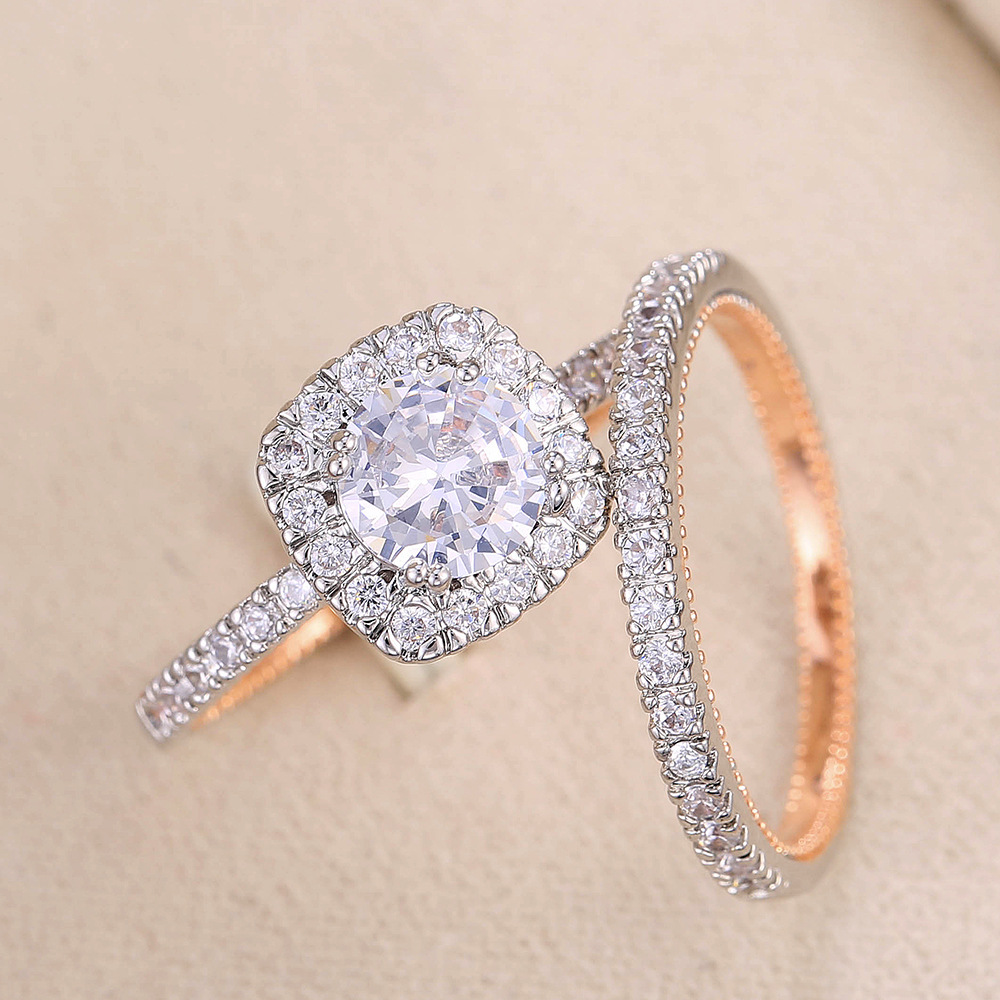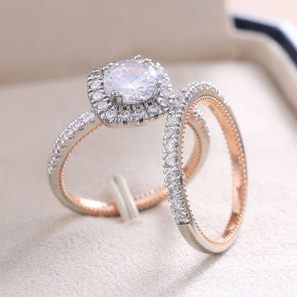 New color-separated ring European and American exquisite luxury zircon female ring copper plated two-color micro-inlaid ring wholesale