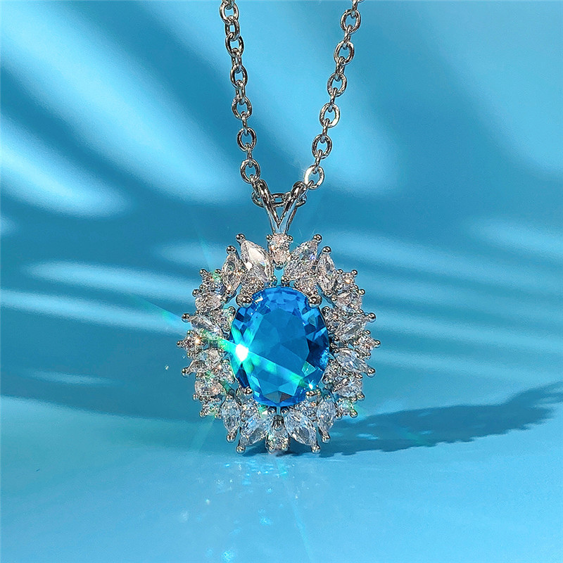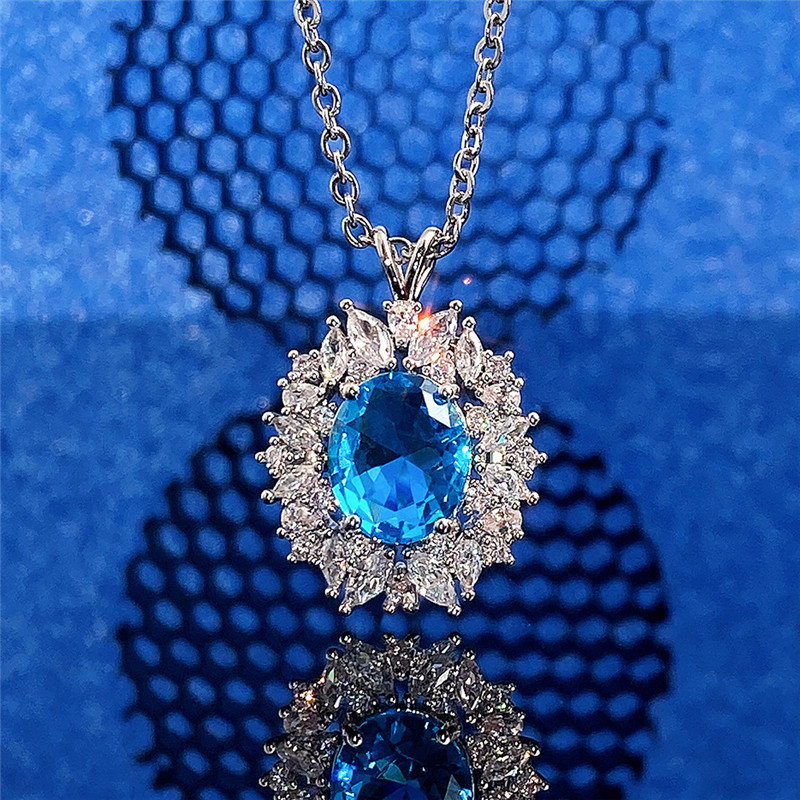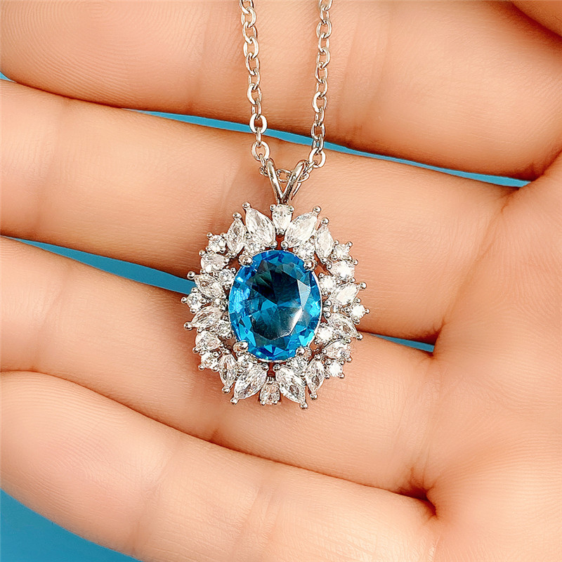 New Colored Gemstone Series Light Luxury Imitation Sapphire Pendant Women's Necklace Manufacturer Supply Wholesale
