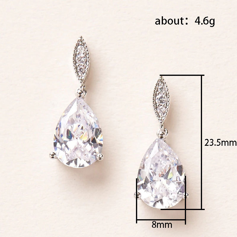 New copper inlaid AAA grade teardrop zircon earrings for women's elegant bride wedding dress accessories hot sale