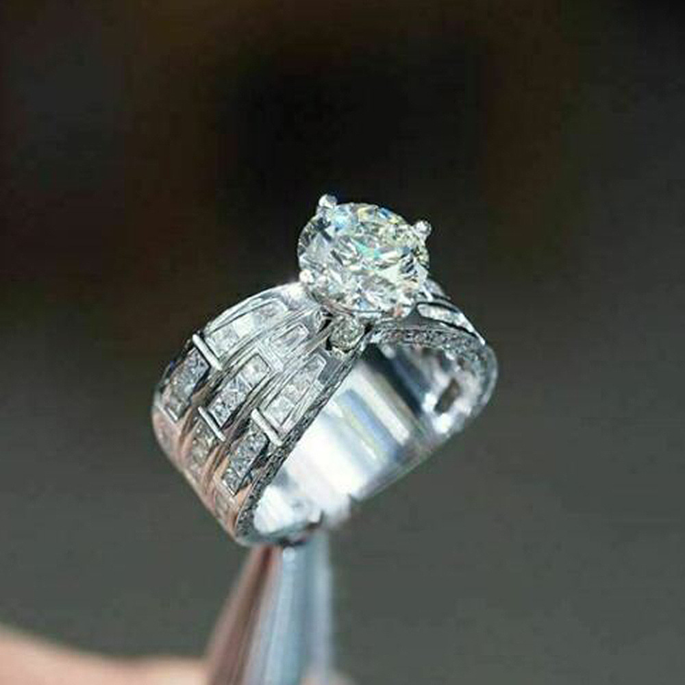 Micro-inlaid celebrity style classic all-match popular ring six-claw zircon wedding ring European and American style light luxury ring