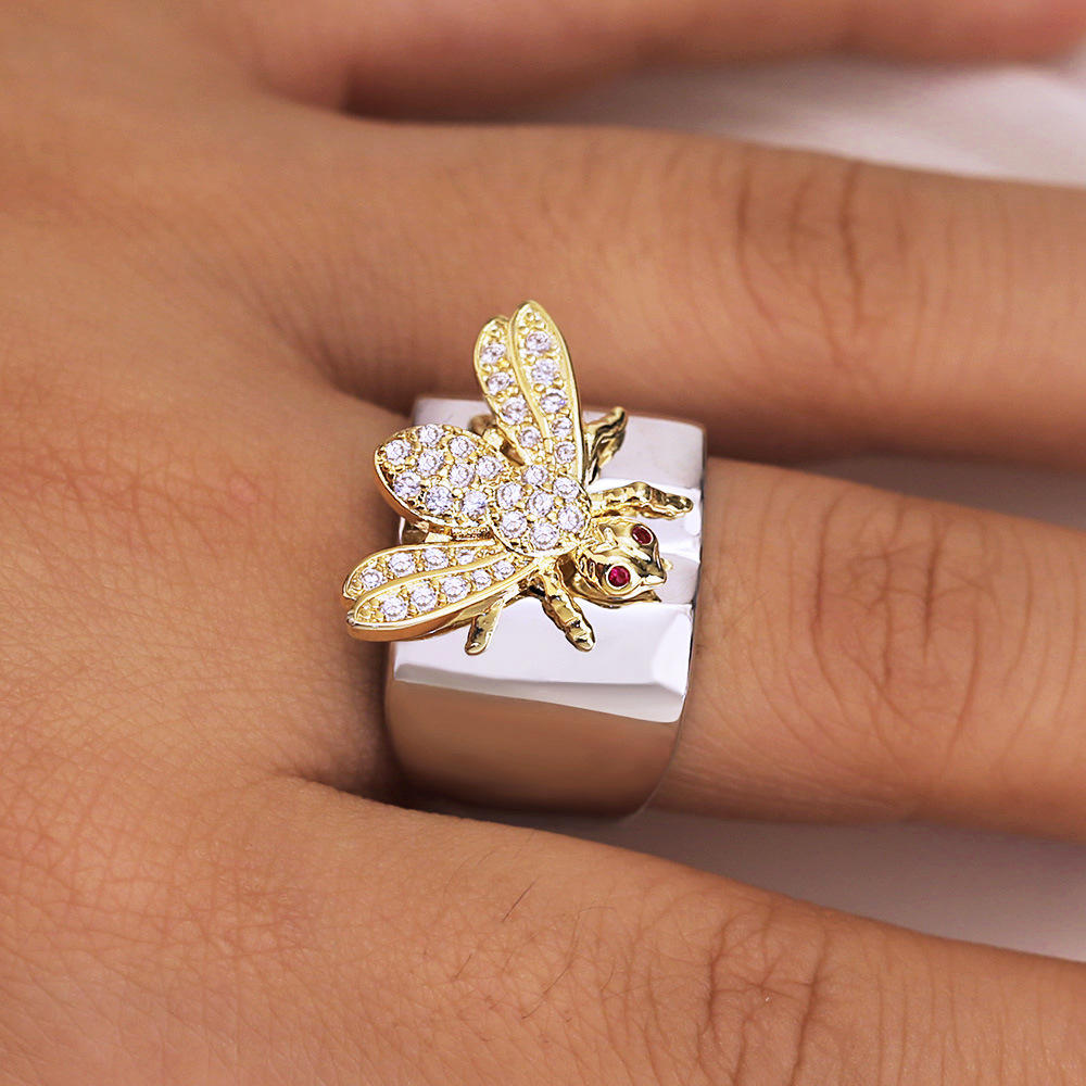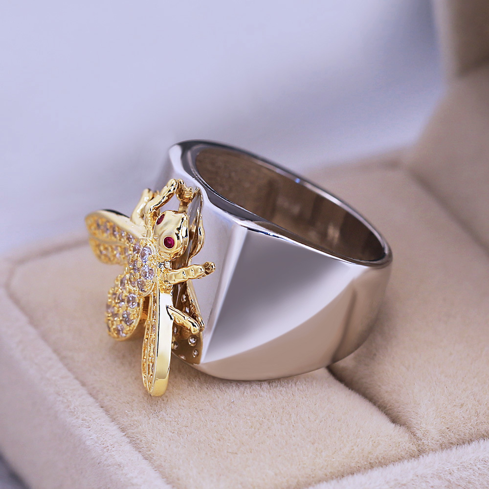 New copper ornaments from Japan, Korea, Europe and the United States, cute bee color-coded zircon rings, real gold color-preserving ladies' ring accessories