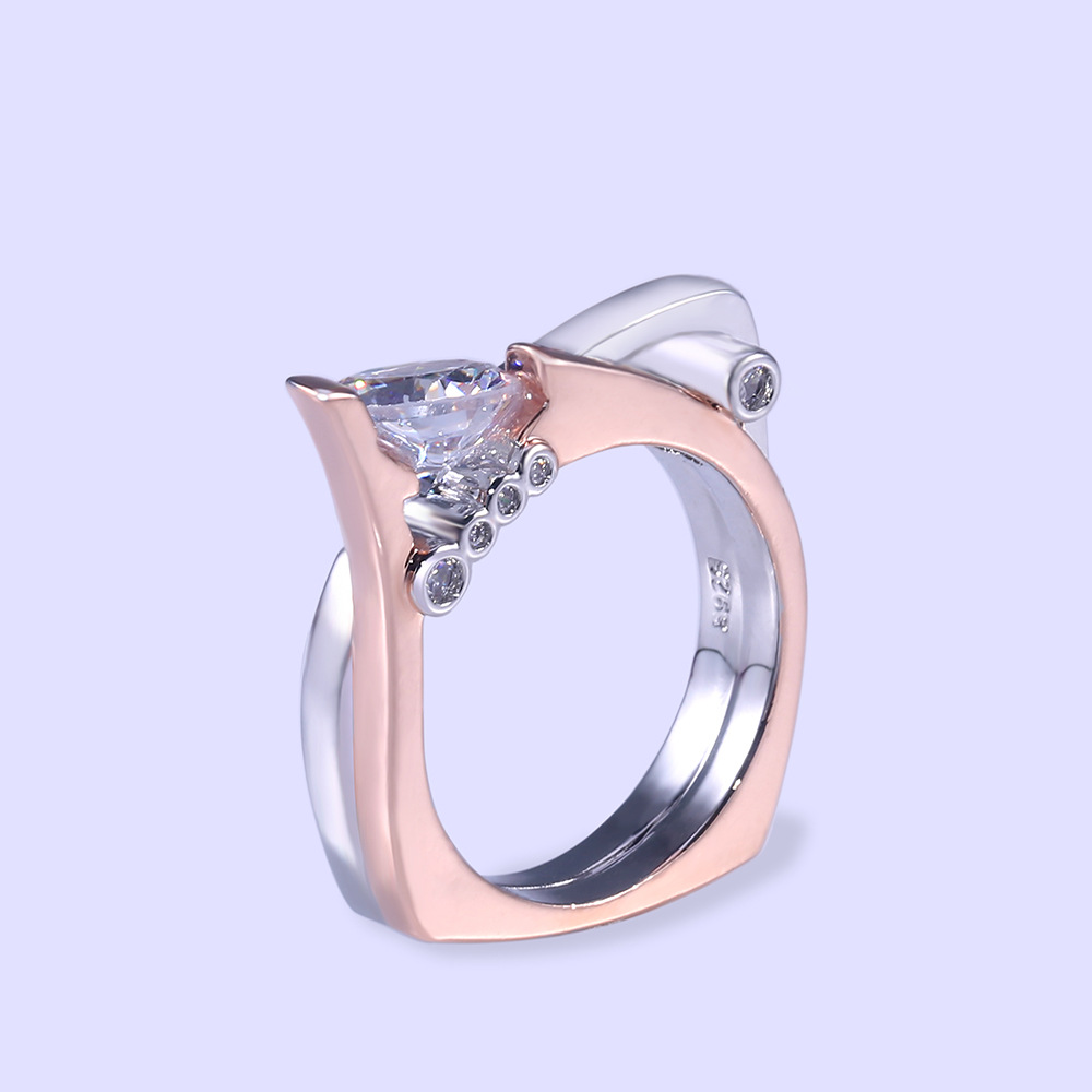 New copper-plated two-tone zircon rings from e-commerce, popular European and American men's and women's jewelry