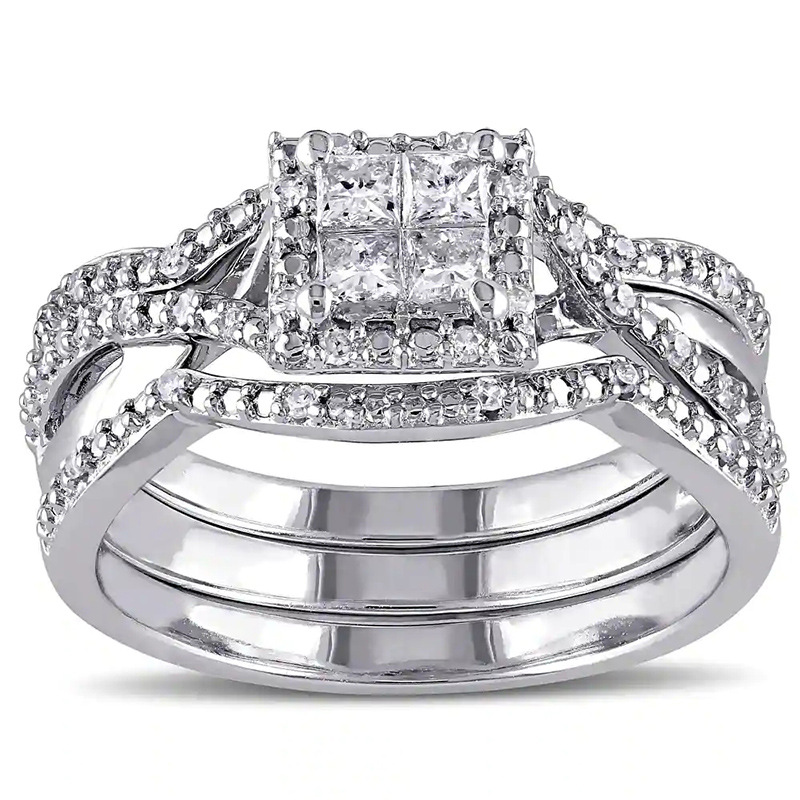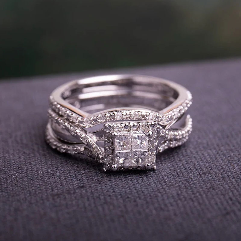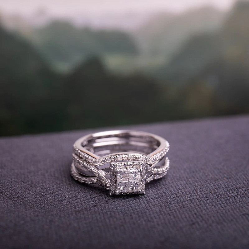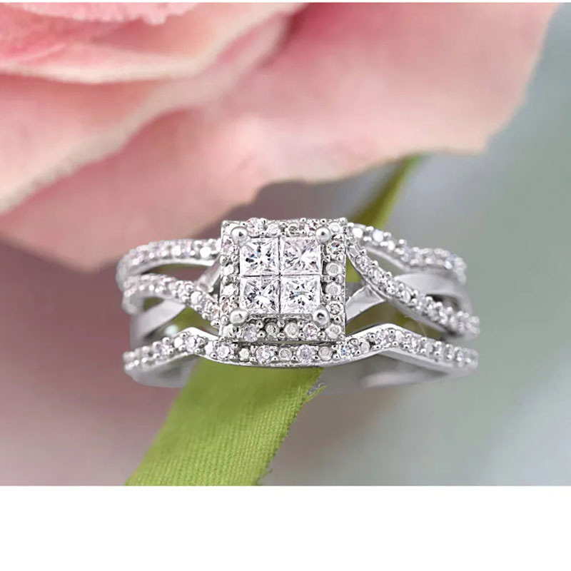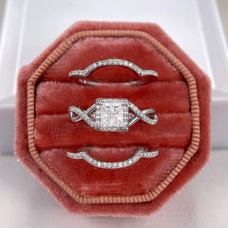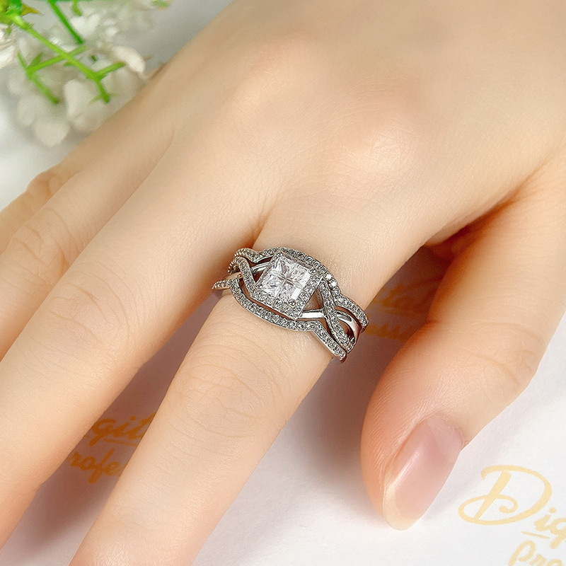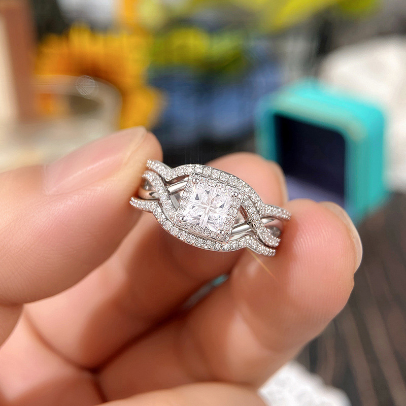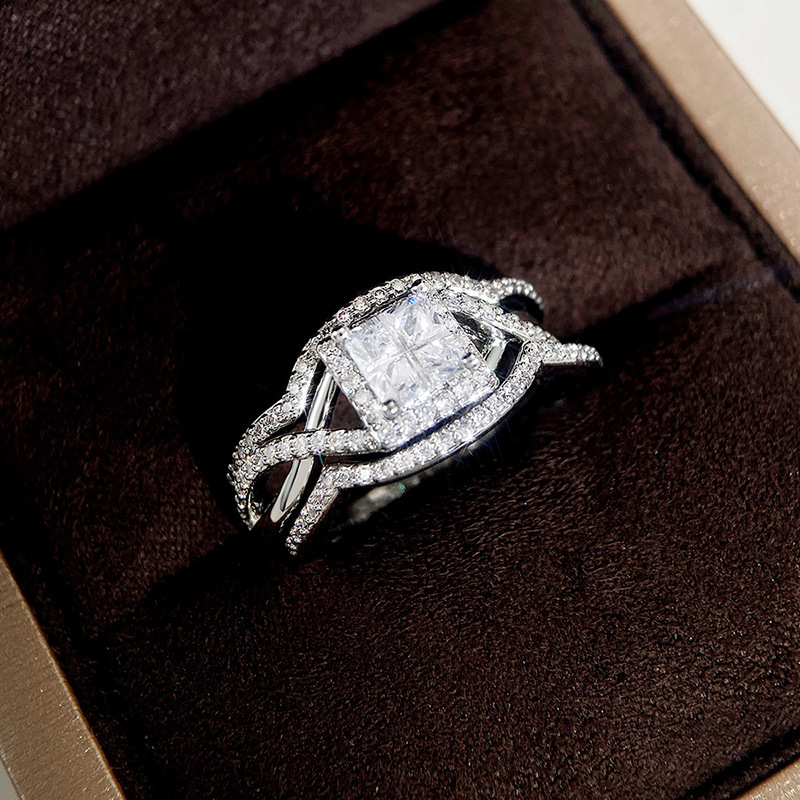 Hot selling new princess square ring European and American hot style inlaid zircon women's jewelry engagement proposal ring