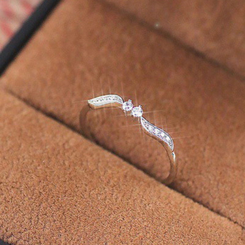 Classic four-claw imitation zircon micro-inlaid ring women's double row two-color twist arm ring engagement wedding ring women