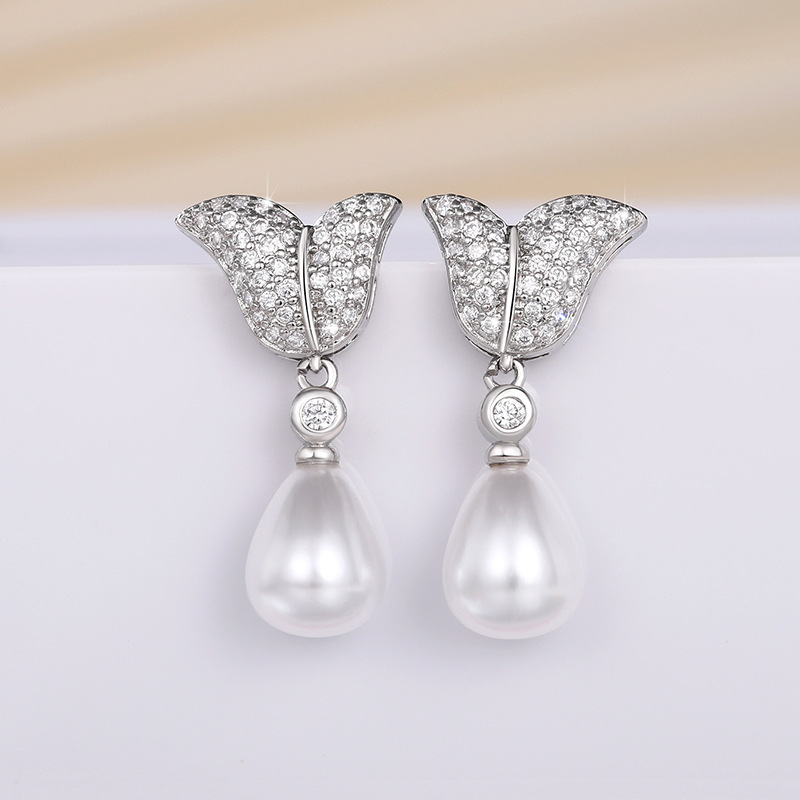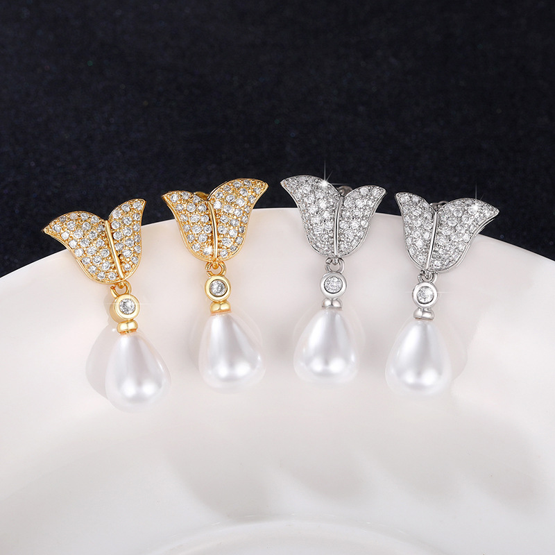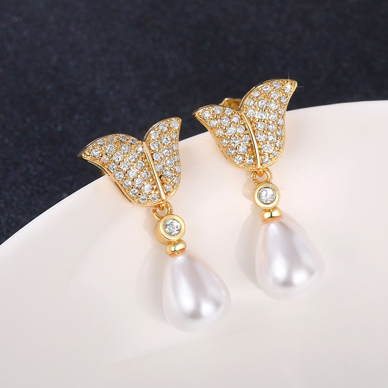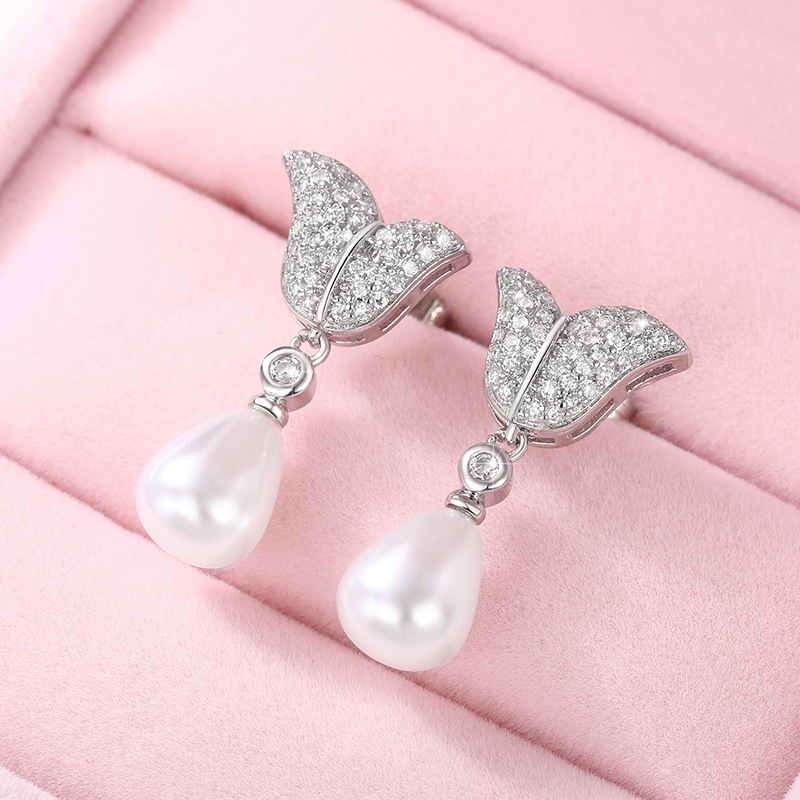 New creative mermaid tail imitation pearl earrings for women exquisite temperament lady style earrings