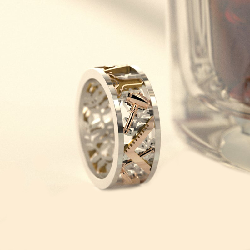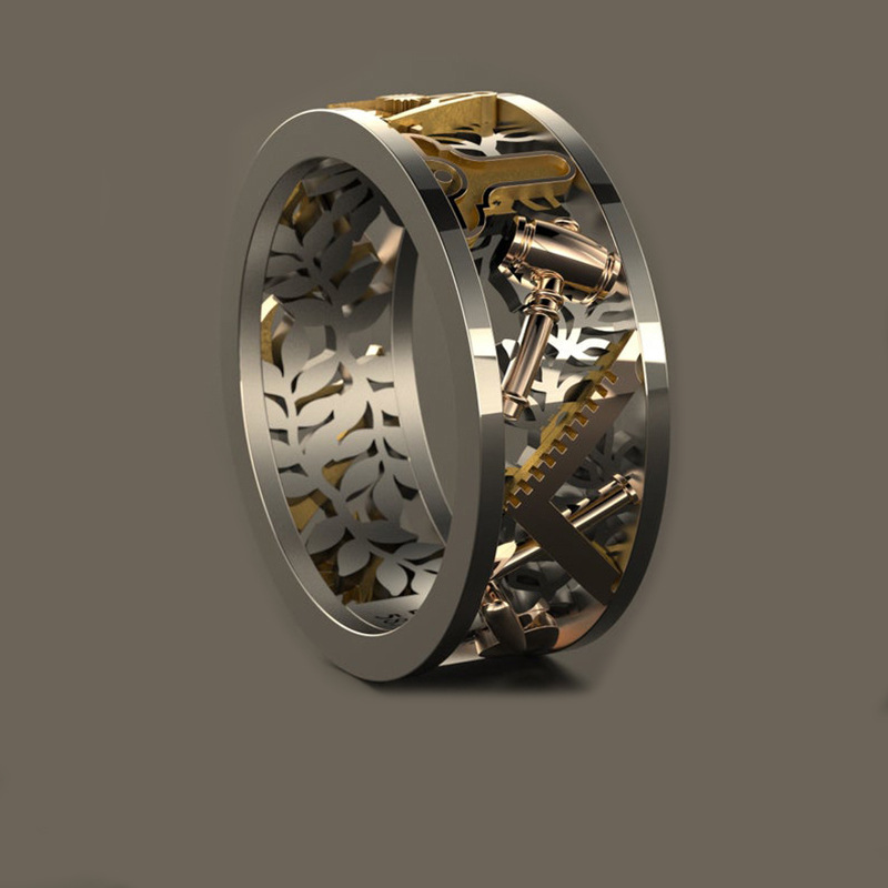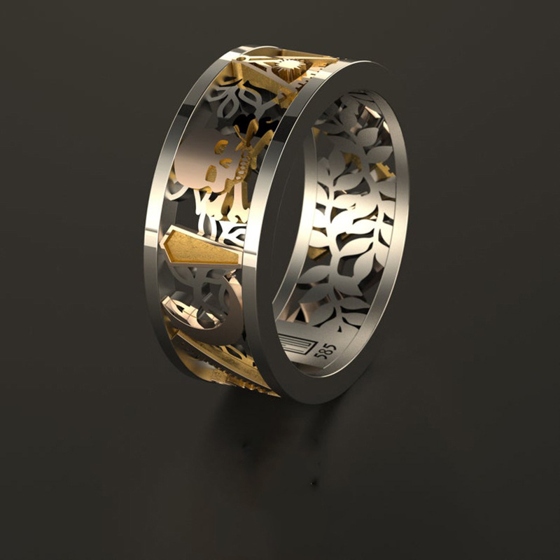 New creative punk style hollow color ring men's European and American two-color ring jewelry wholesale