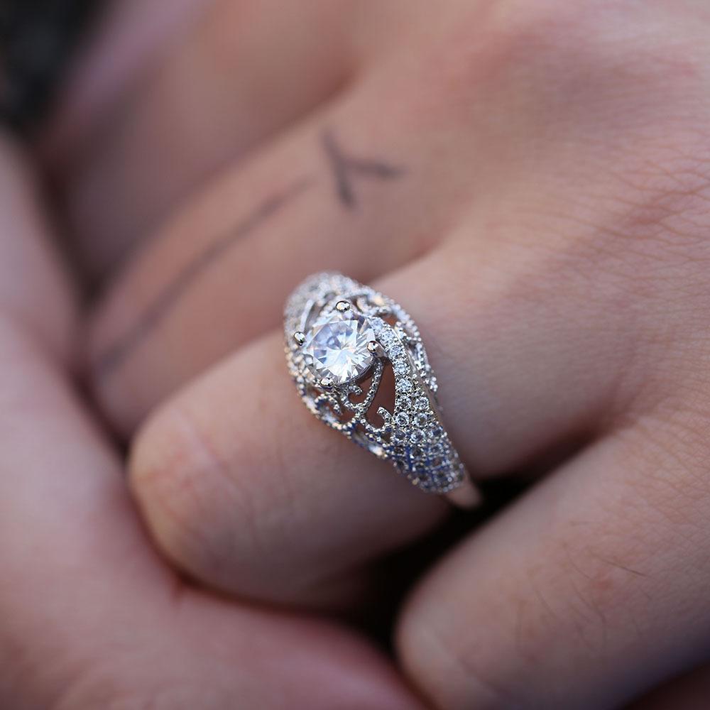 New zircon ring hollow cross four claws fashion design proposal wedding ring birthday gift ring