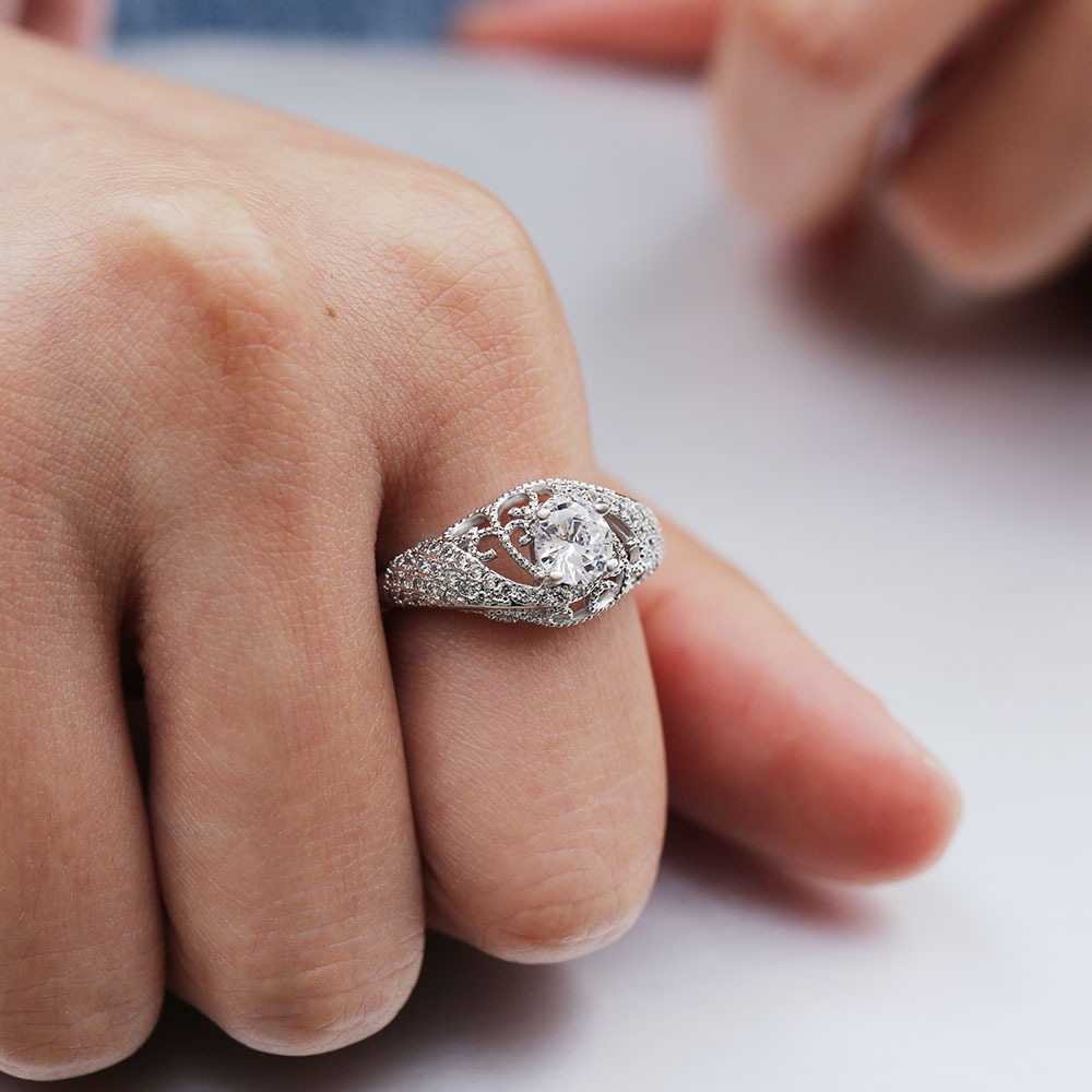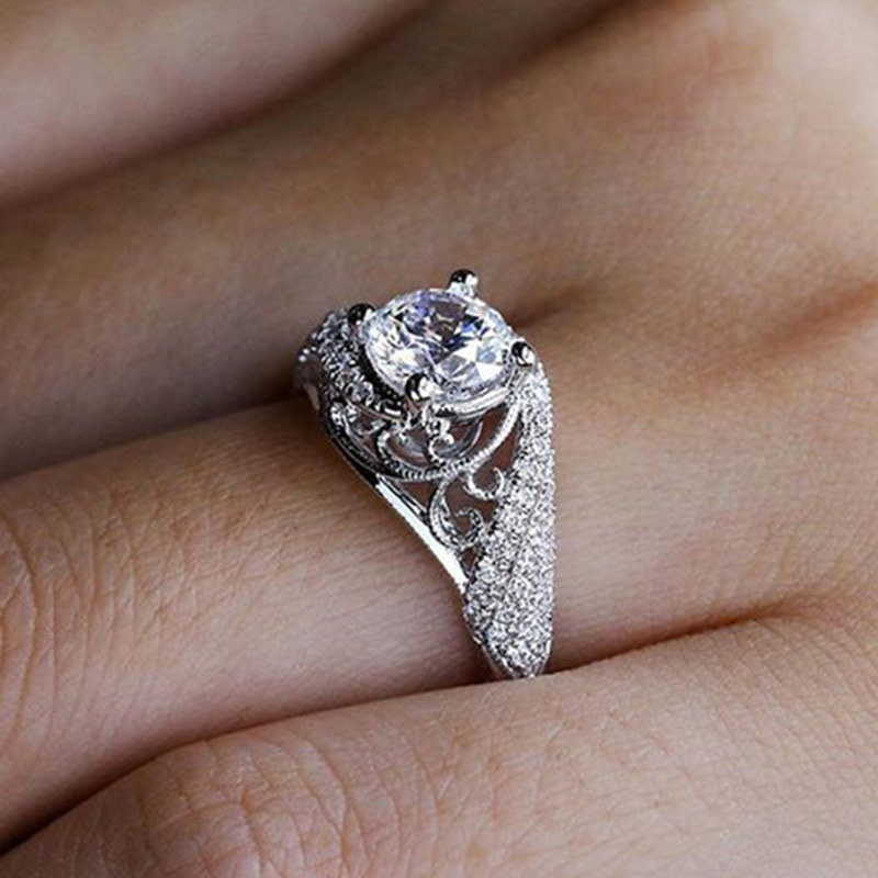 Micro-inlaid celebrity style classic all-match popular ring six-claw zircon wedding ring European and American style light luxury ring