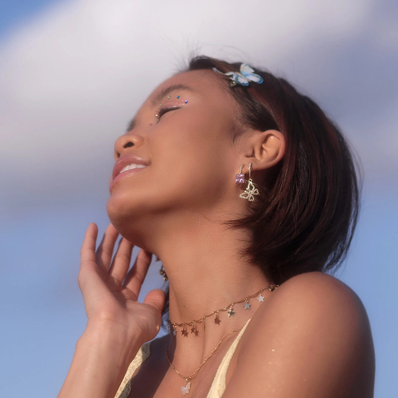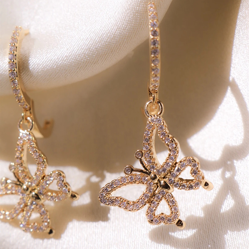New creative rose gold butterfly women's zircon earrings European and American ear clip earrings wholesale
