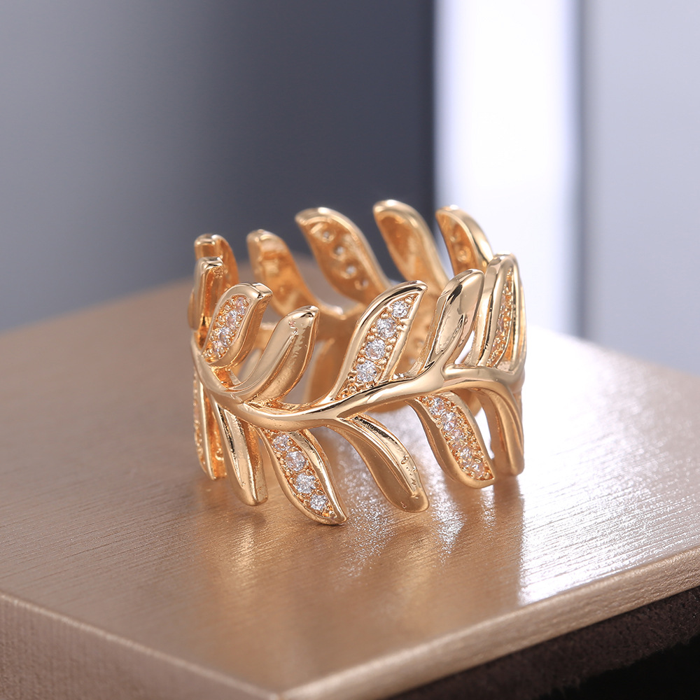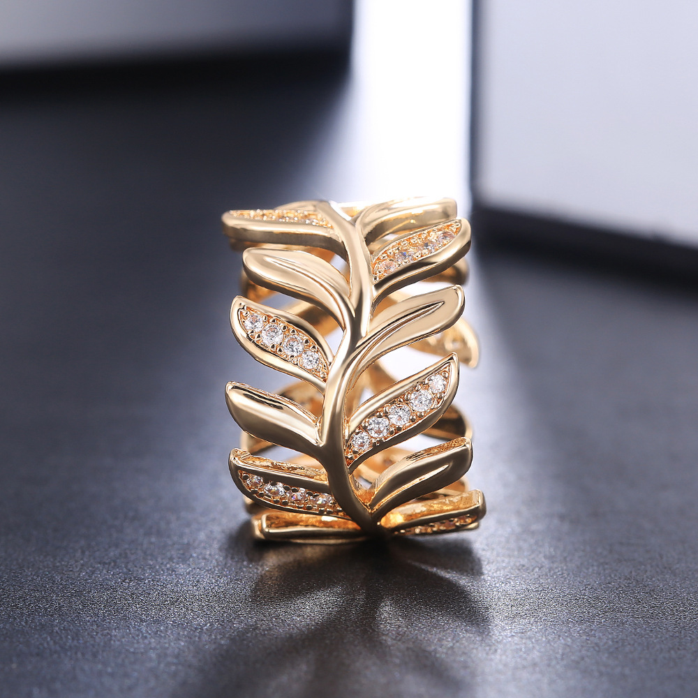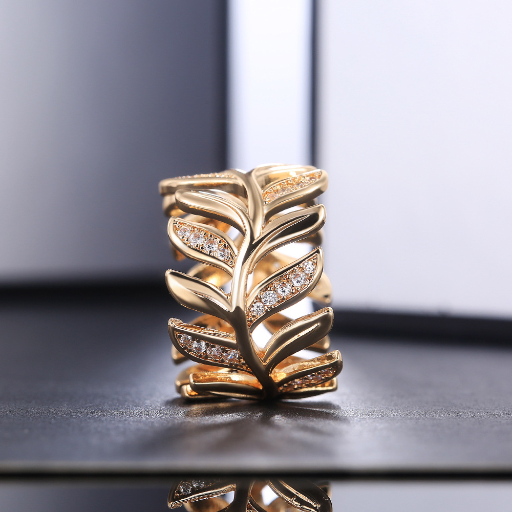 New creative vine leaf women's zircon ring fashion party cocktail jewelry