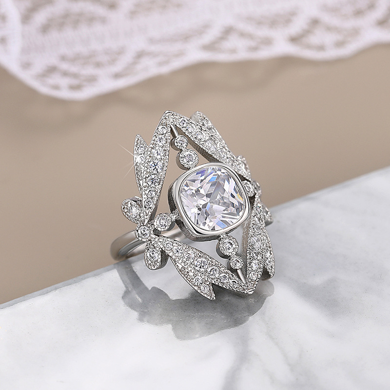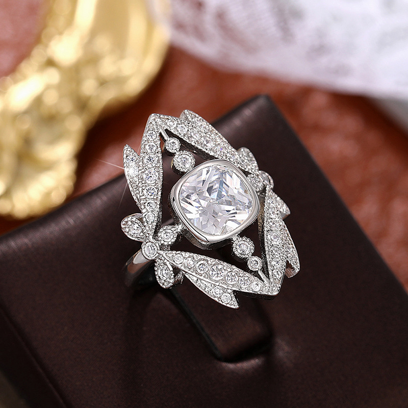 New zircon ring hollow cross four claws fashion design proposal wedding ring birthday gift ring