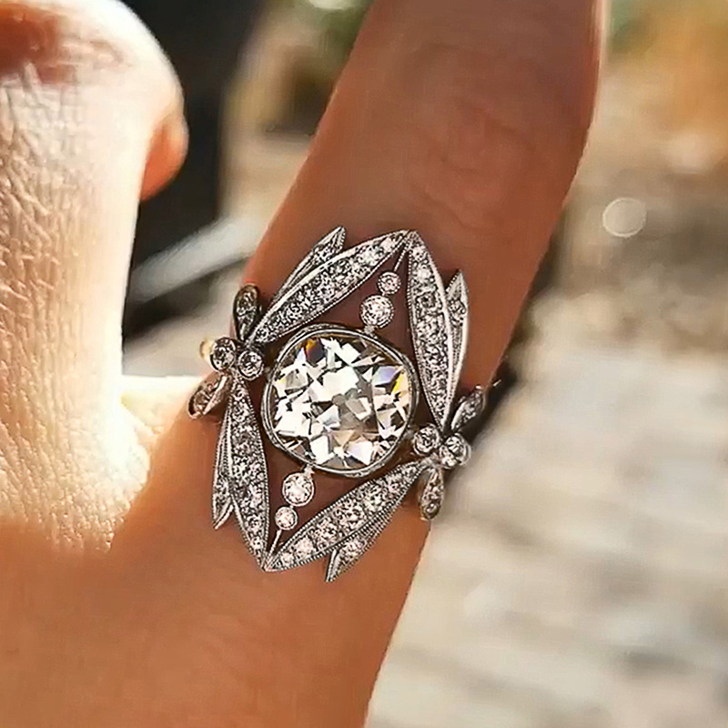 New best-selling super flash ring tree branch bud four-claw inlaid ring light luxury wedding ring for girlfriend