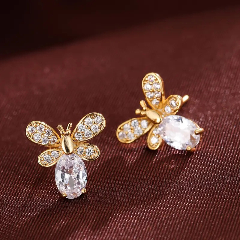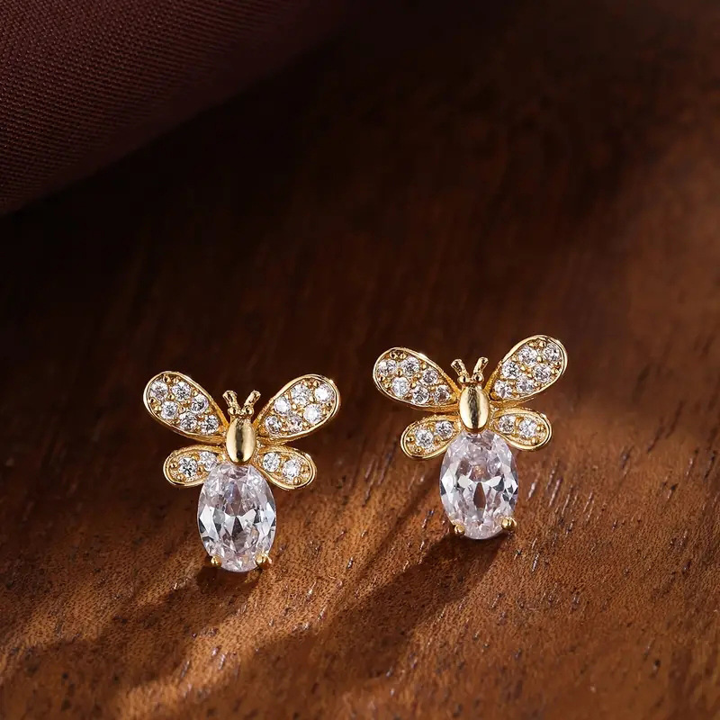 New cute little bee earrings popular animal earrings pastoral style light luxury insect earrings