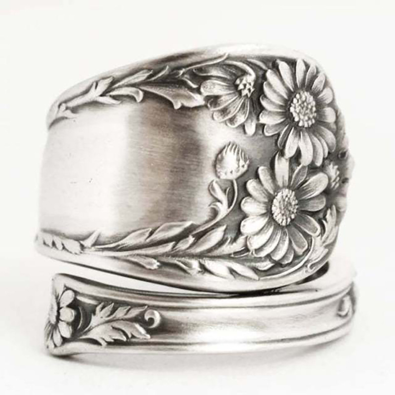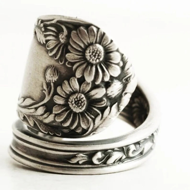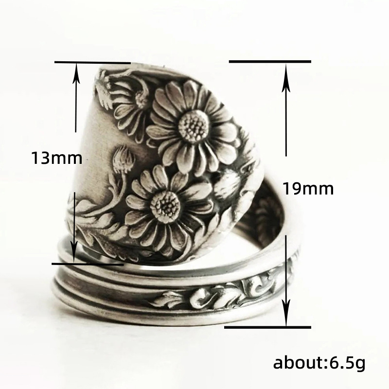 New dark retro daisy flower ring personality all-match open ring ladies exaggerated style ring