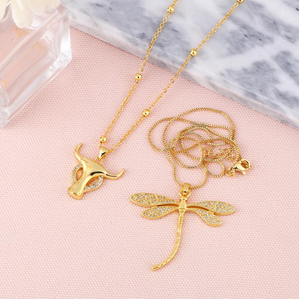 New dragonfly necklace female European and American creative hip-hop bull head diamond clavicle chain nka002
