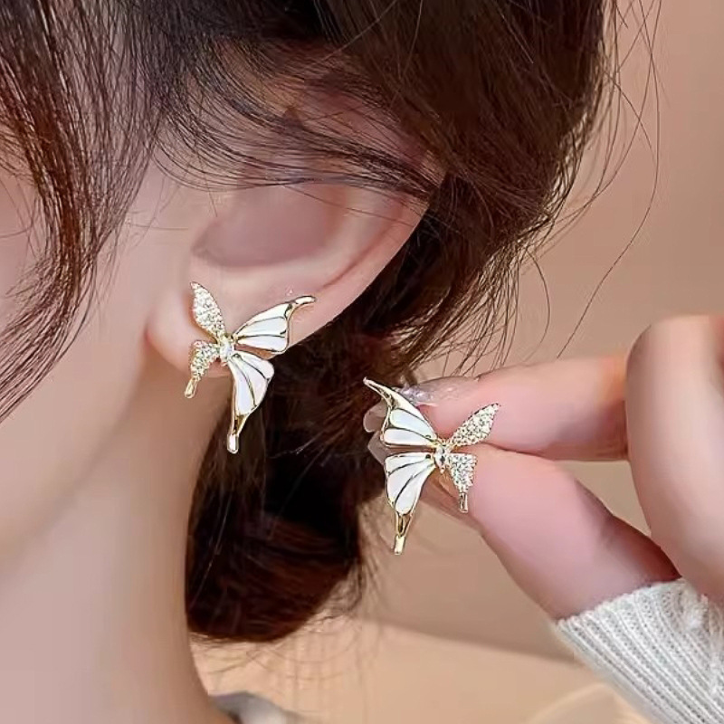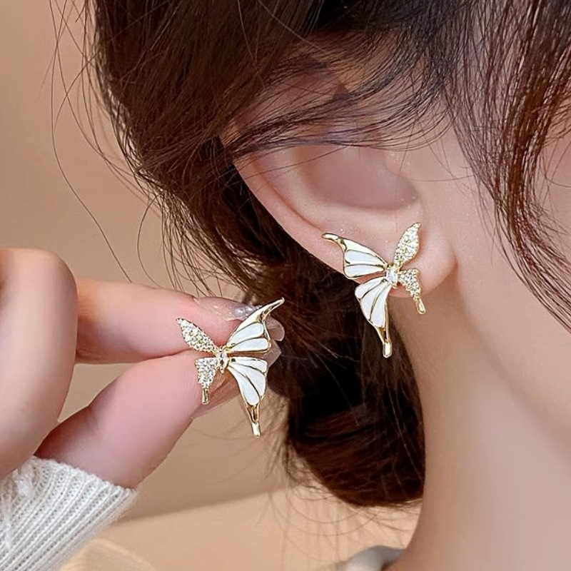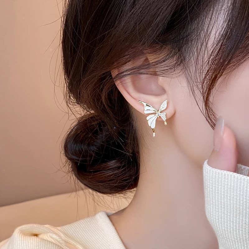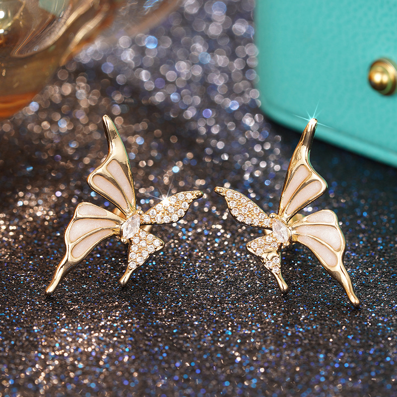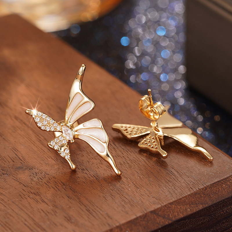 New e-commerce oil drop earrings for women butterfly ladies forest jewelry micro-inlaid zircon elegant niche