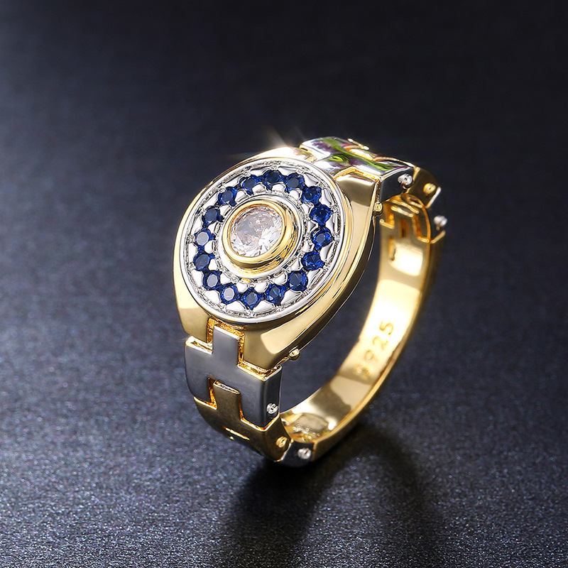 European and American luxury design ring fashionable temperament horse eye zircon ring multi-layer hollow design index finger ring