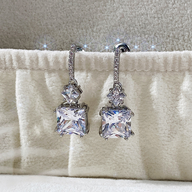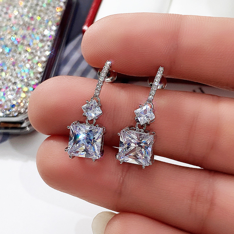 New earrings 8*8mm rock sugar zircon tassel earrings for women with round face and slimming earrings