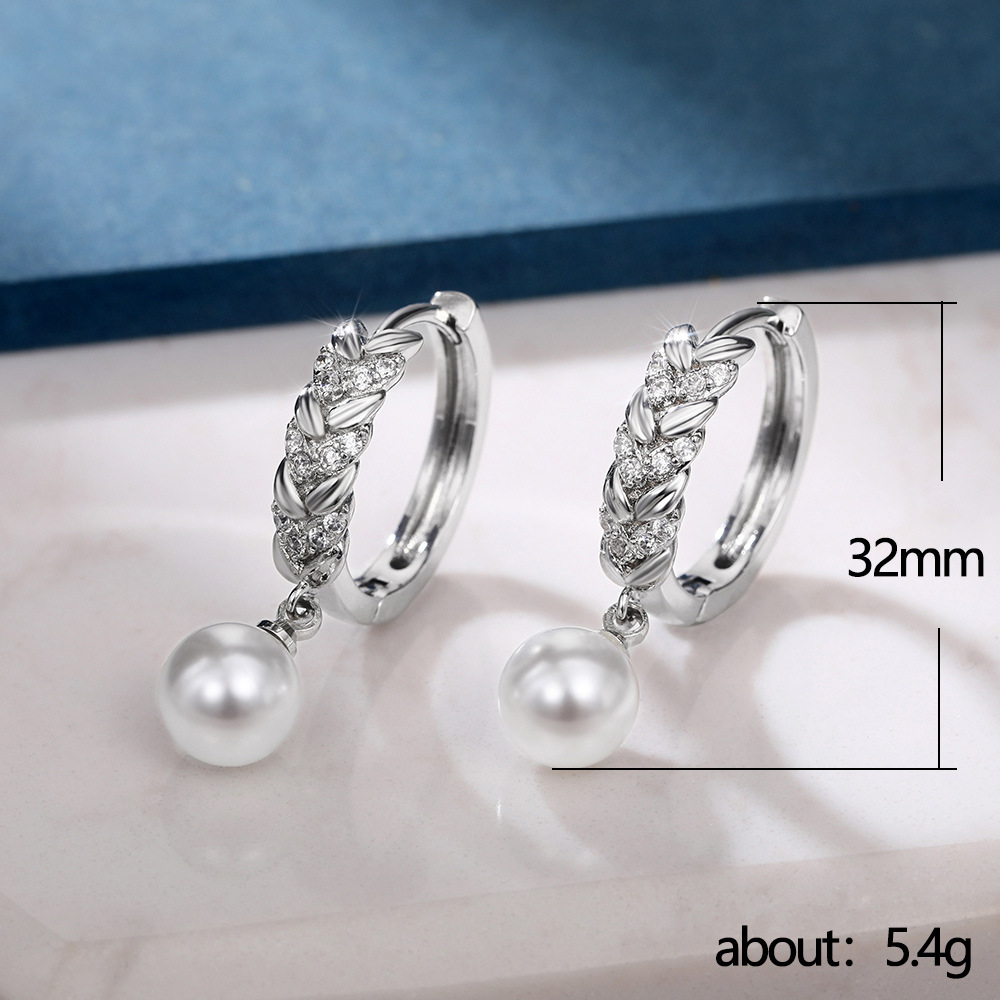 New earrings platinum-plated zircon wheat ear earrings for women, light mature style, imitation pearl shell bead earrings