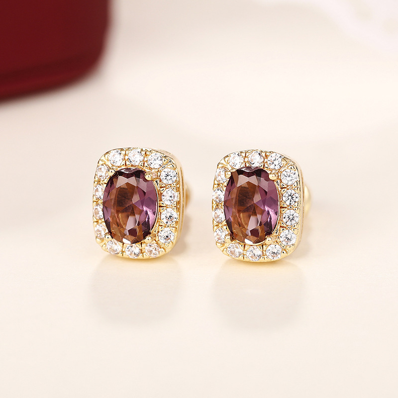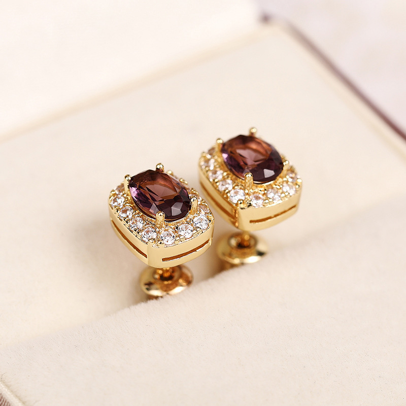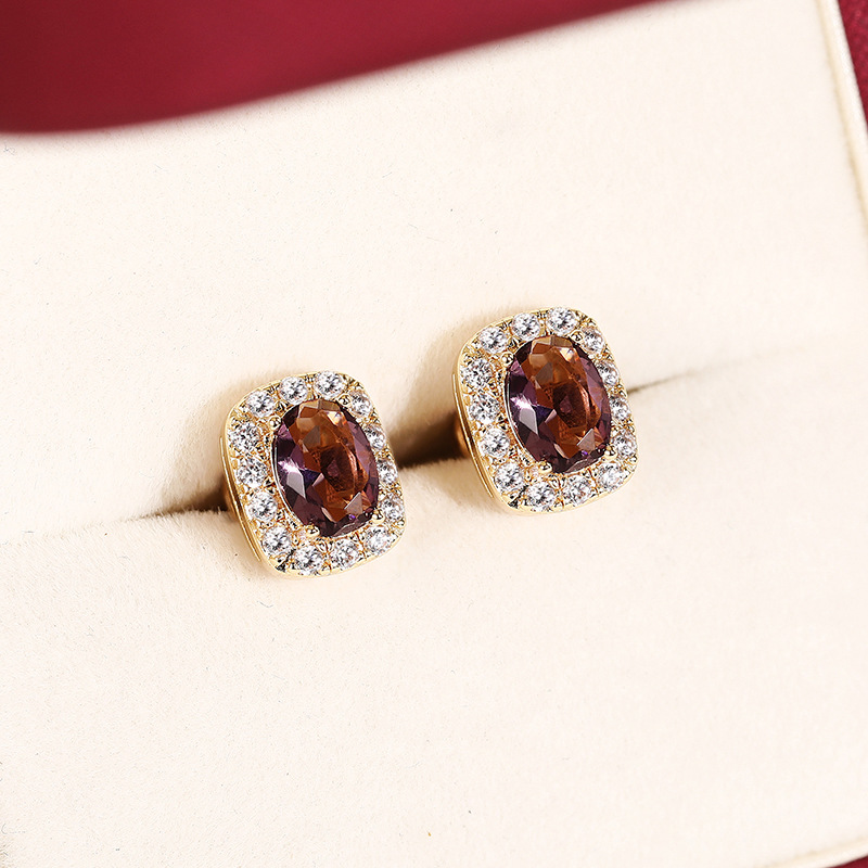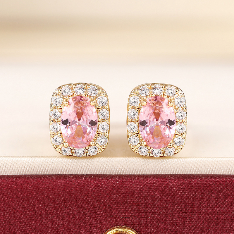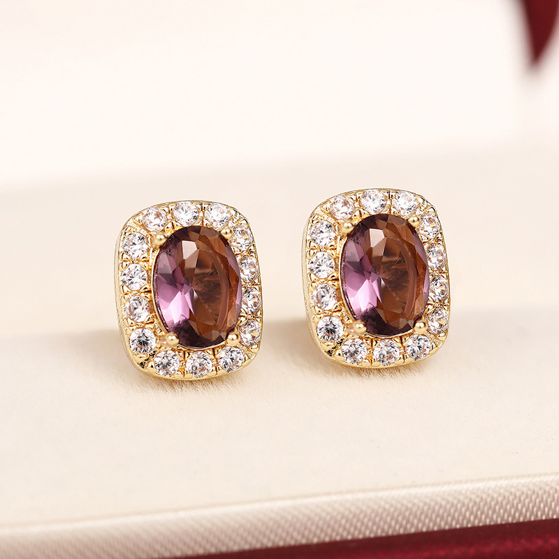 New earrings retro Hepburn style imitation red corundum zircon earrings luxury anniversary celebration accessories
