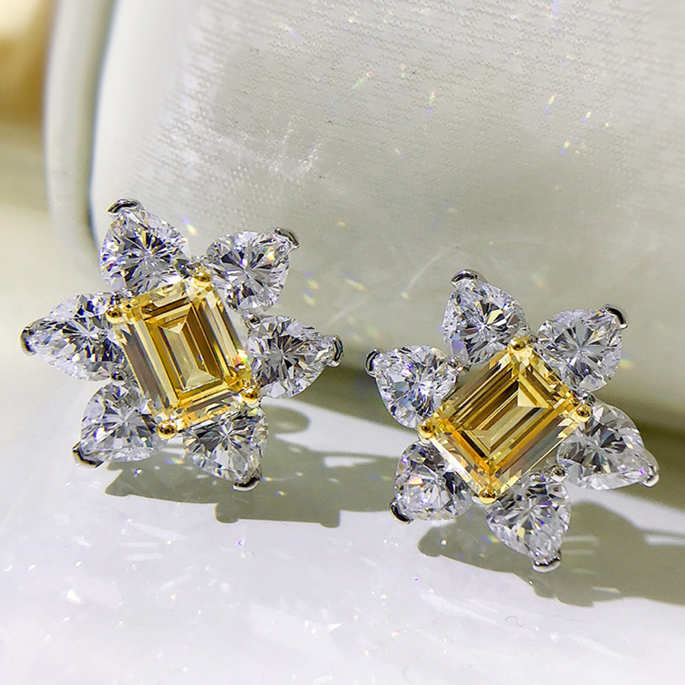 New earrings with sparkling yellow diamonds and full-studded flowers and zircon earrings, perfect for evening brides