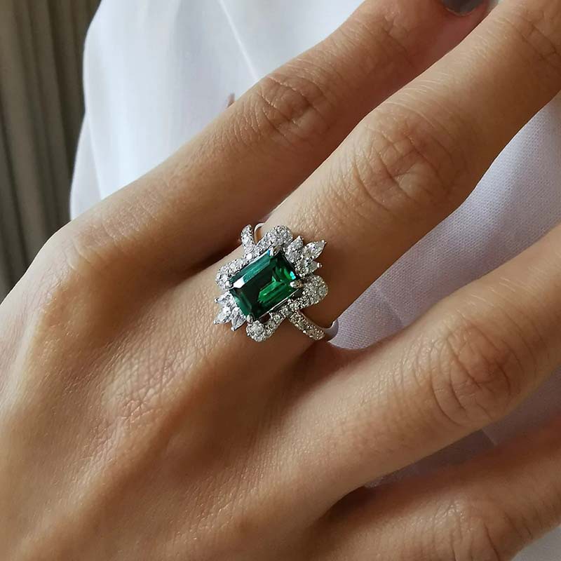 New emerald square princess ring European and American fashion engagement ring crown temperament floral jewelry