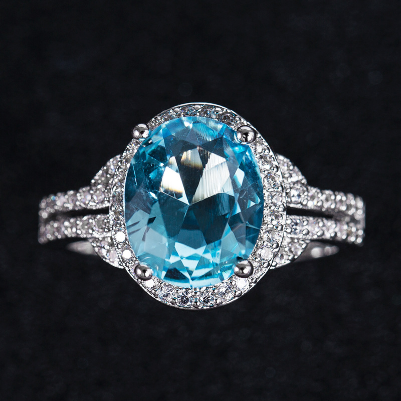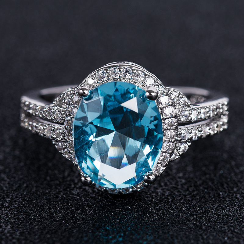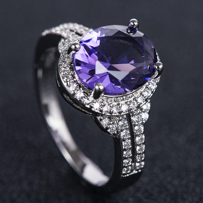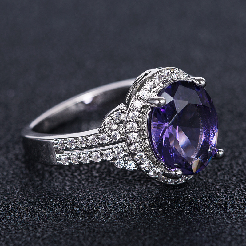 New European and American accessories fashion charm purple blue zircon women's ring engagement proposal ring jewelry