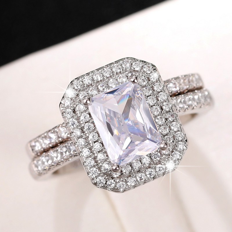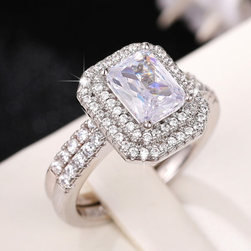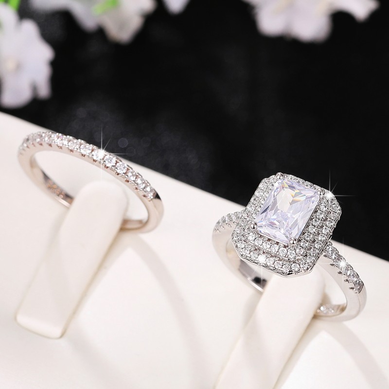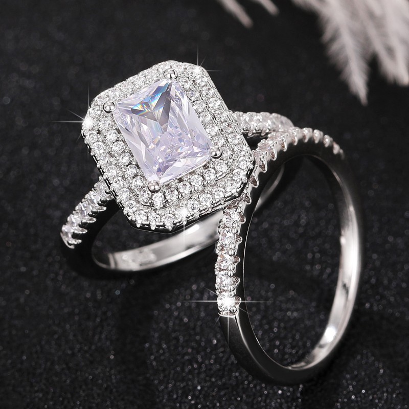 Hot selling new princess square ring European and American hot style inlaid zircon women's jewelry engagement proposal ring