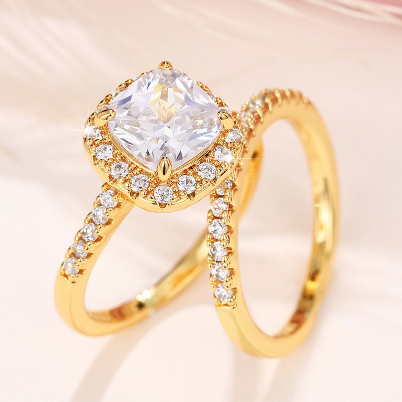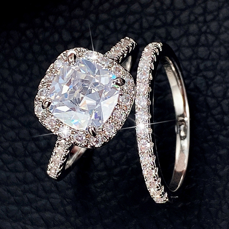 New European and American couple rings popular fashion four-claw zircon ring 2-piece set wholesale ring set